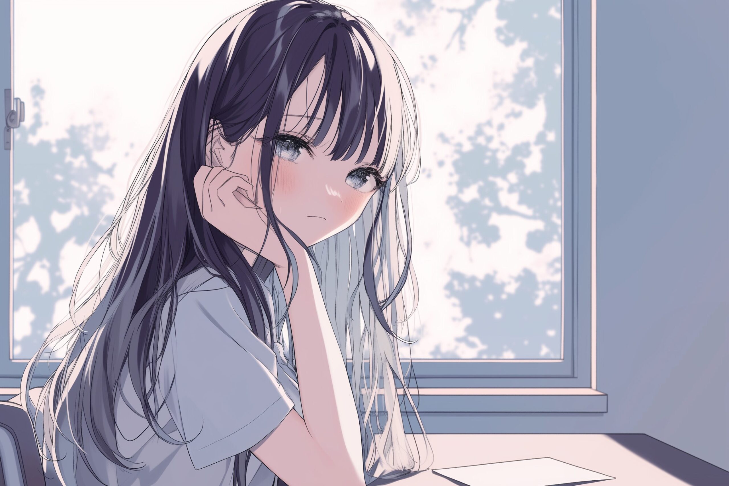 検索タグ:イラスト、キャラクター、女子、女の子、女性、女、女の人、アニメ、漫画、マンガ、若い、人物、顔、美しい、綺麗、きれい、キレイ、アート、お洒落、挿絵、インスタ、Instagram、AI生成画像、コピースペース、恋愛、恋、かわいい、可愛い、カワイイ、制服、笑顔、微笑み、微笑む、黒髪、ロングヘア、長い髪