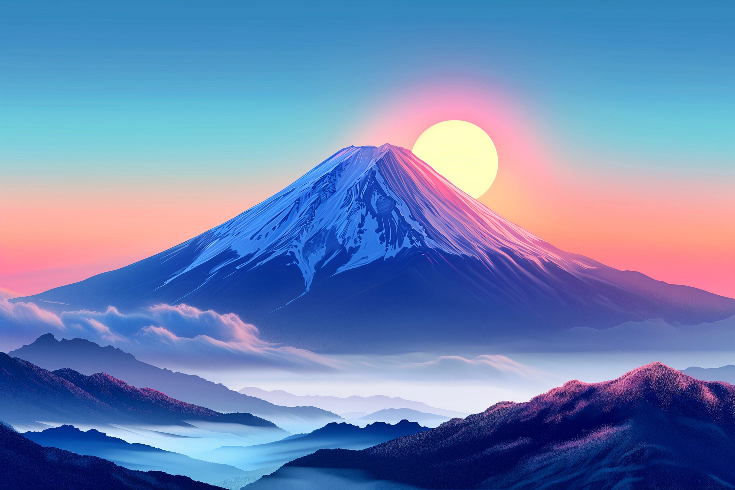 検索タグ:イラスト、富士山、山、自然、朝日、初日の出、綺麗、神々しい、きれい、夕日、夕焼け、朝焼け、風景、風景画、景色、アイキャッチ、デザイン、ポストカード、ポスター、チラシ、サムネイル、挿入画像