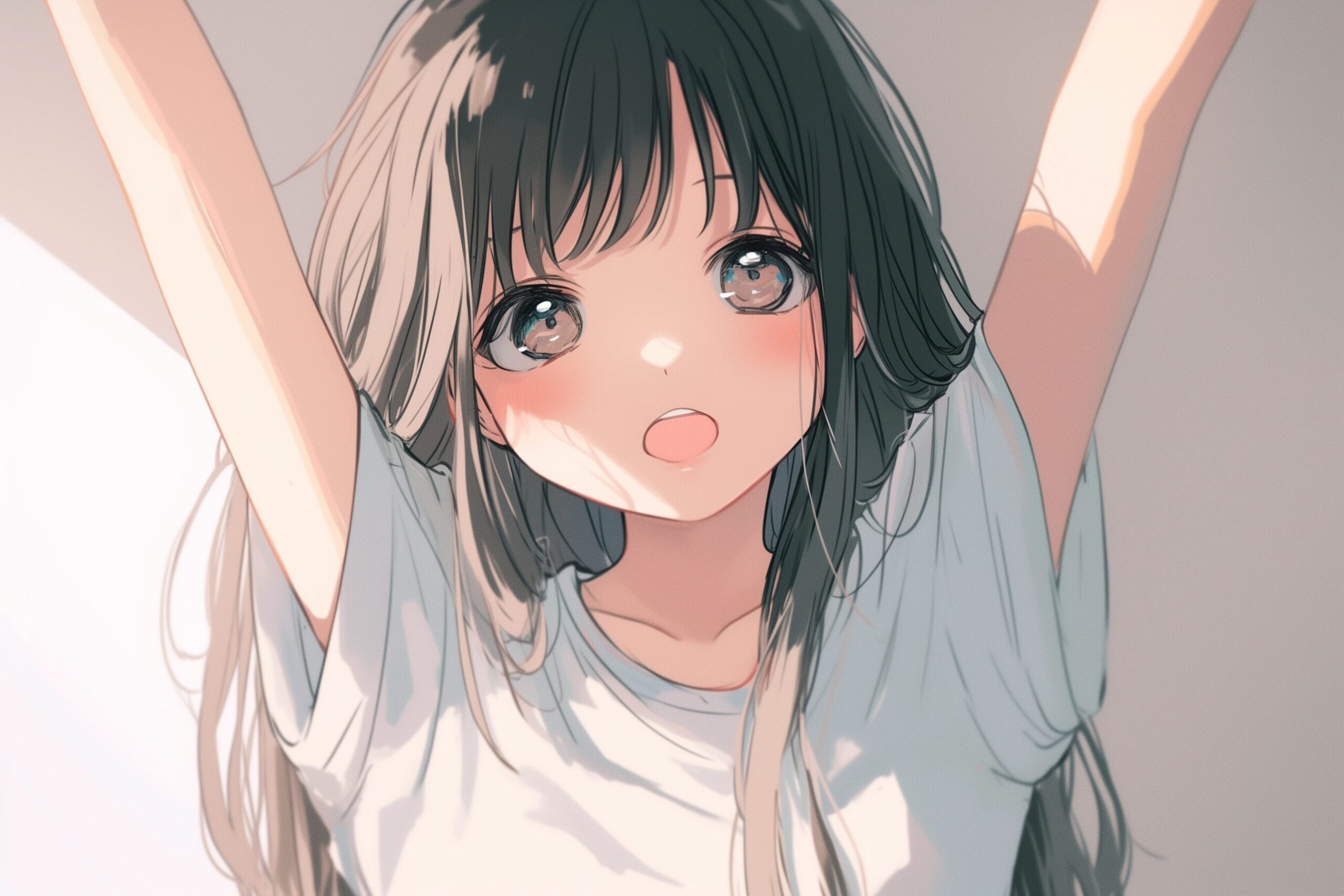 検索タグ:イラスト、ファッション、キャラクター、女性、女、女の子、女子、女の人、アニメ、漫画、マンガ、美人、美女、若い、かわいい、可愛い、カワイイ、人物、顔、美しい、綺麗、きれい、キレイ、アート、お洒落、挿絵、インスタ、Instagram、AI生成画像、fashion、コピースペース、寝起き、黒髪、ロングヘア、伸び、ストレッチ