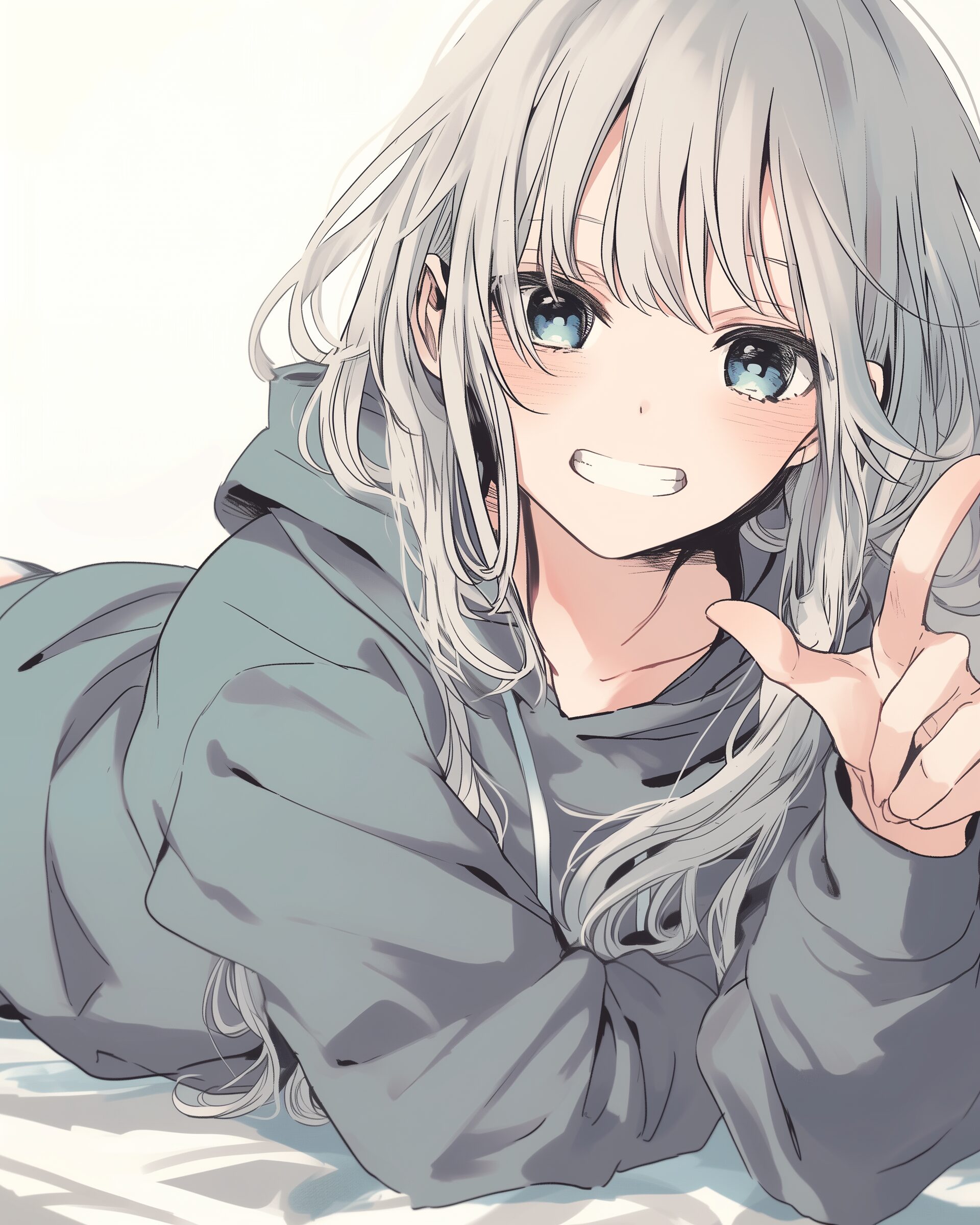 検索タグ:イラスト、ファッション、キャラクター、女性、女、女の子、女子、女の人、アニメ、漫画、マンガ、美人、美女、若い、かわいい、可愛い、カワイイ、人物、顔、美しい、綺麗、きれい、キレイ、アート、お洒落、挿絵、インスタ、Instagram、AI生成画像、fashion、コピースペース、銀髪、笑顔、パーカー女子、寝転ぶ、寝転び