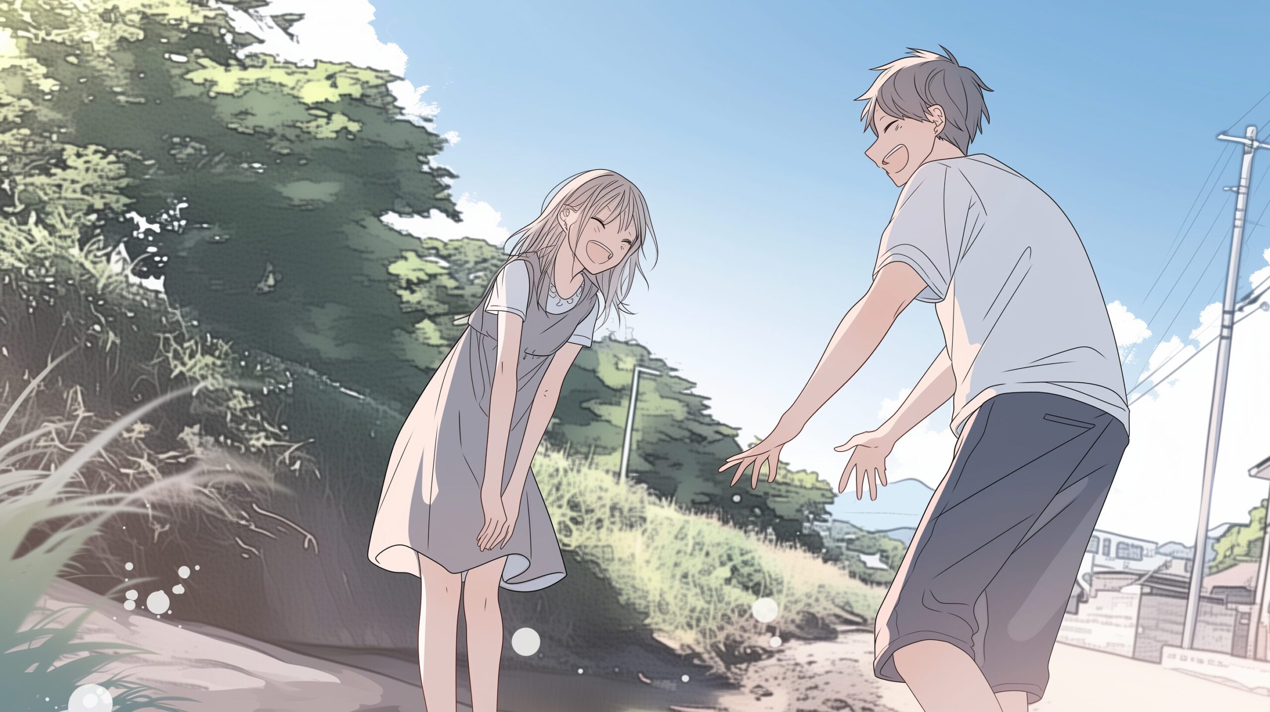 検索タグ:イラスト、ファッション、キャラクター、女性、女、女の子、女子、女の人、アニメ、漫画、マンガ、美人、美女、若い、かわいい、可愛い、カワイイ、人物、顔、美しい、綺麗、きれい、キレイ、アート、お洒落、挿絵、インスタ、Instagram、AI生成画像、fashion、コピースペース、カップル、恋人、男性、男、男の人、恋愛、恋、エモい、夏、夏休み、イベント、笑顔、川、ビーチ、青空、晴れ、サマー、川辺、河川敷、遊ぶ、楽しい、楽しむ、田舎、デート