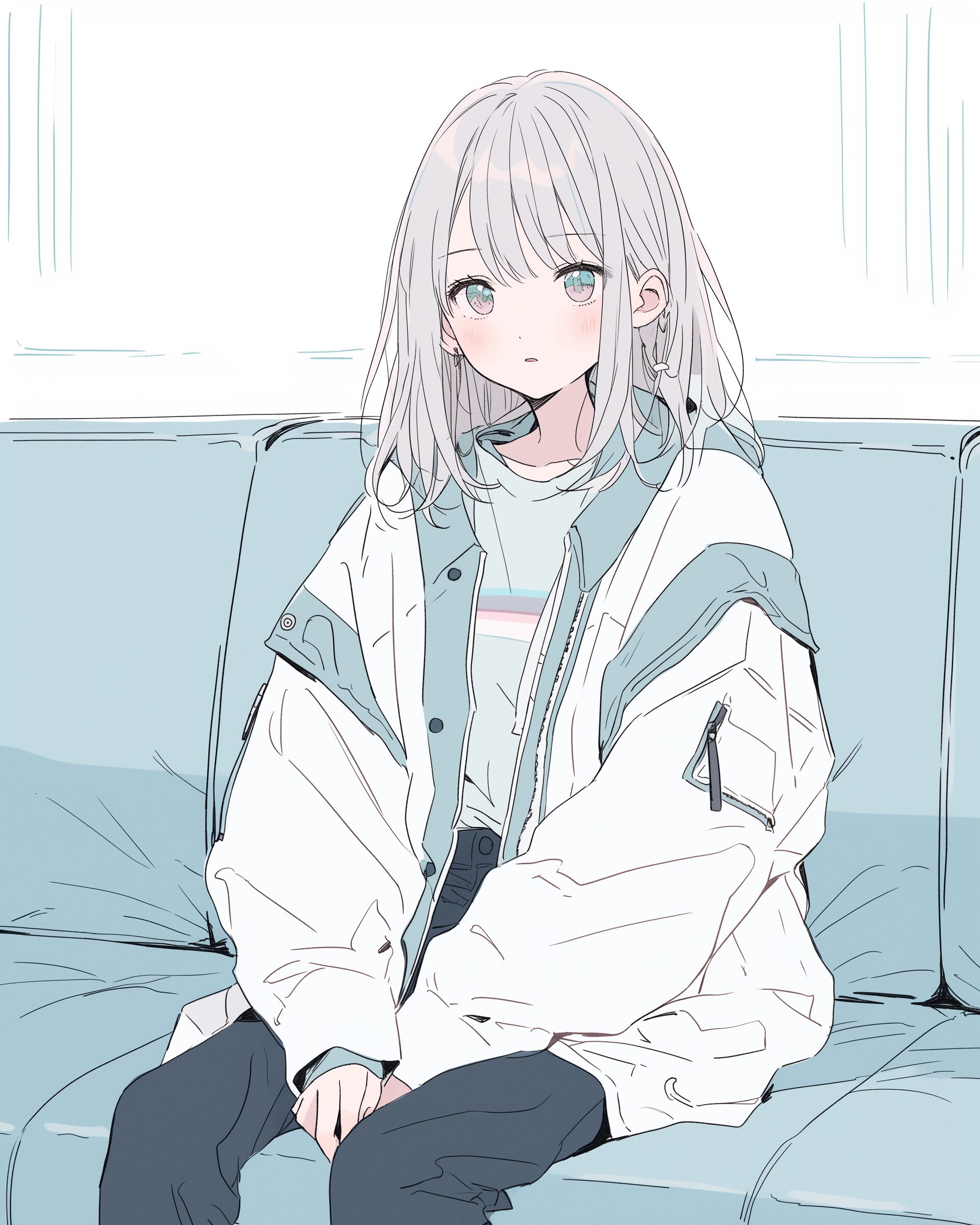 検索タグ:イラスト、ファッション、キャラクター、女性、女、女の子、女子、女の人、アニメ、漫画、マンガ、美人、美女、若い、かわいい、可愛い、カワイイ、人物、顔、美しい、綺麗、きれい、キレイ、アート、お洒落、女子高生、JK、挿絵、夏、春、パステルカラー、トップス、春服、ブルー、青、グリーン