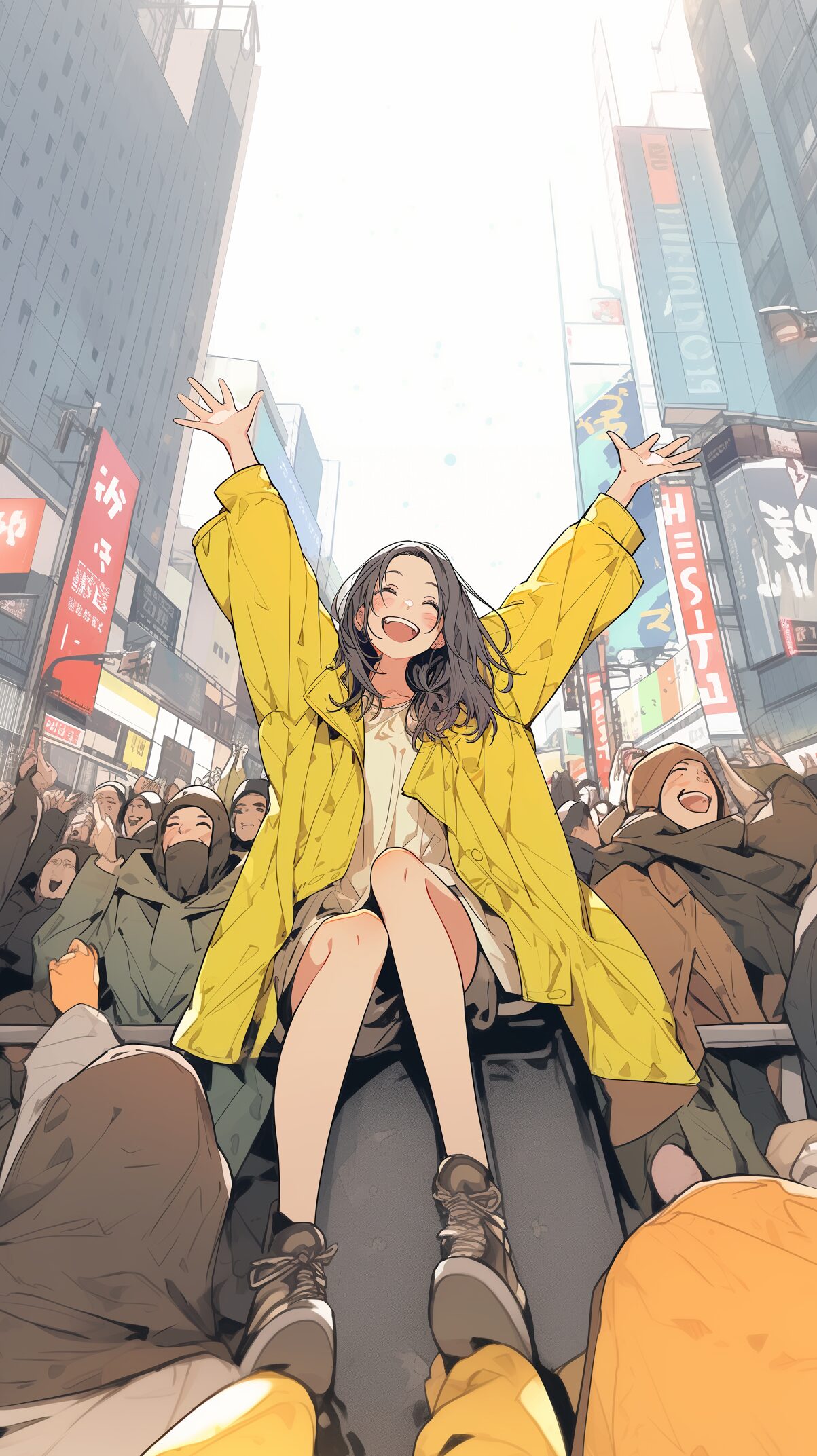【壁紙】黄色のジャケットを着た女の子の待ち受け画像イラスト01