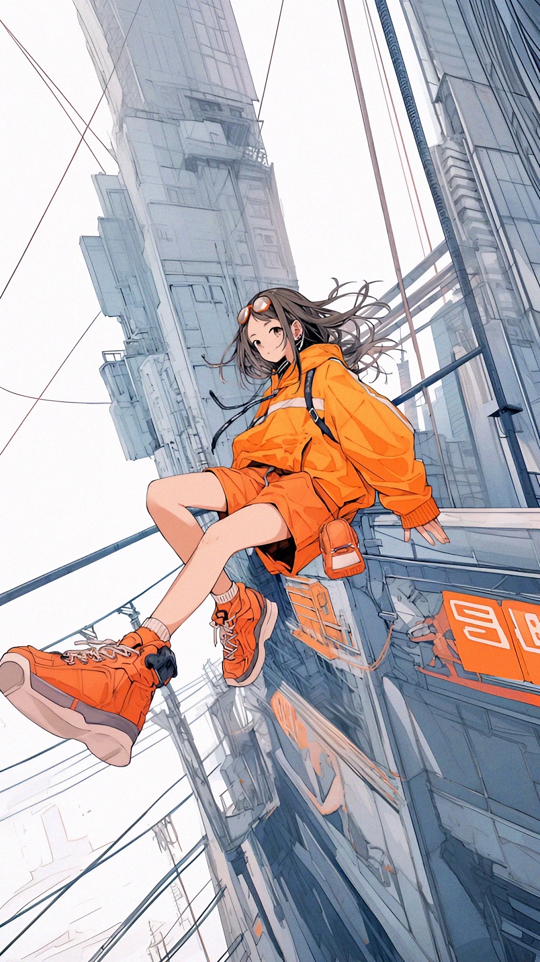 【壁紙】オレンジのフード付きジャケット着た女の子の待ち受け画像イラスト02