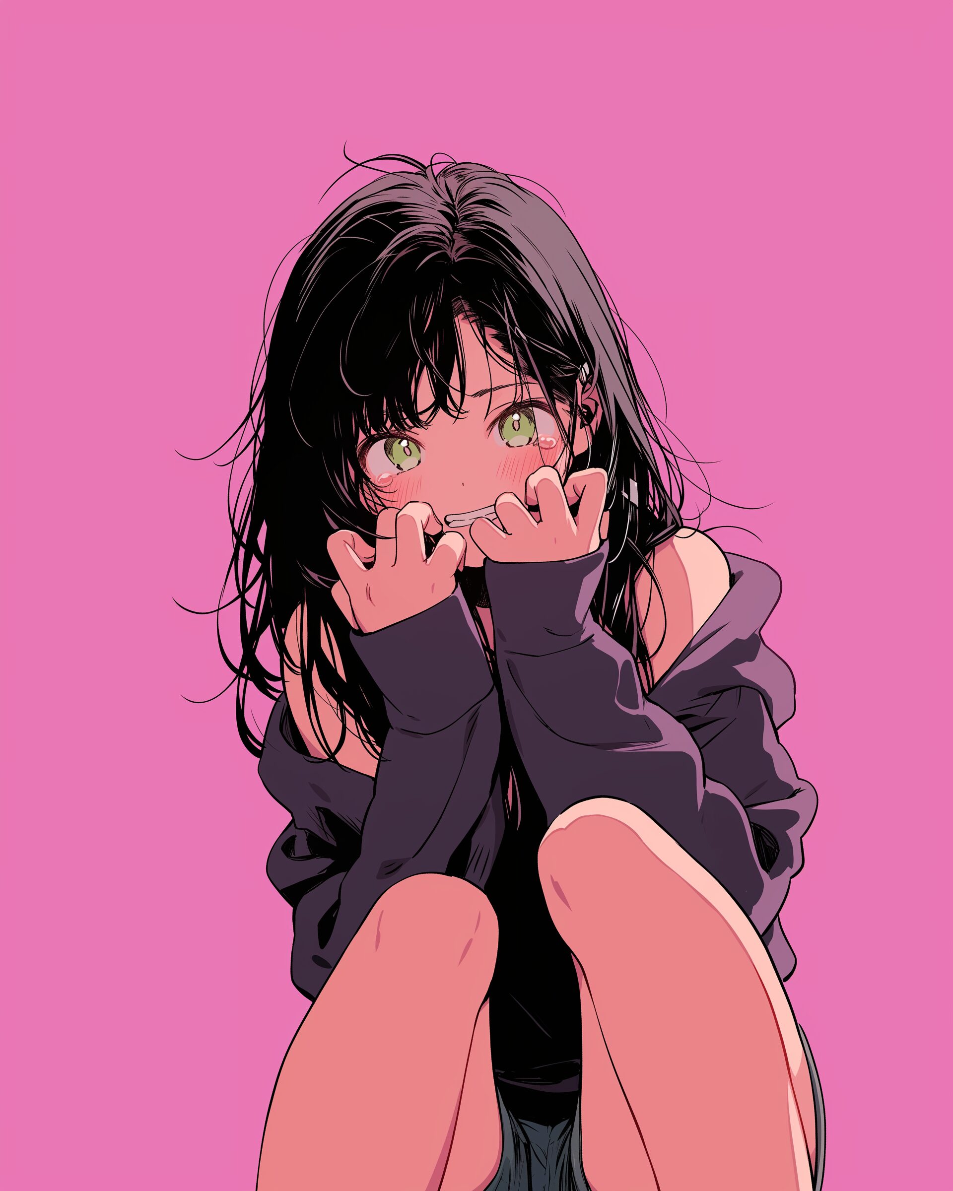検索タグ:イラスト、ファッション、キャラクター、女性、女、女の子、女子、女の人、アニメ、漫画、マンガ、美人、美女、若い、かわいい、可愛い、カワイイ、人物、顔、美しい、綺麗、きれい、キレイ、アート、お洒落、女子高生、JK、挿絵、夏、春、パステルカラー、春服、インスタ、Instagram、夏、夏服、summer、fashion、パープル、purple、紫、恥ずかしい、パーカー女子