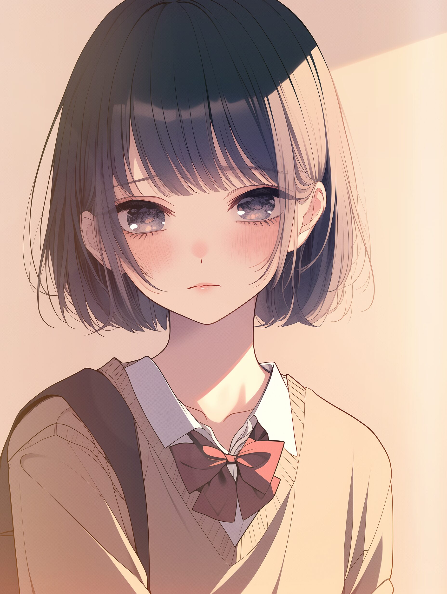 検索タグ:イラスト、ファッション、キャラクター、女性、女、女の子、女子、女の人、アニメ、漫画、マンガ、美人、美女、若い、かわいい、可愛い、カワイイ、人物、顔、美しい、綺麗、きれい、キレイ、アート、お洒落、挿絵、インスタ、Instagram、AI生成画像、fashion、コピースペース、黒髪、ショートヘア、学生、女子高生、高校生、悲しい、悲しみ、泣く、涙、失恋