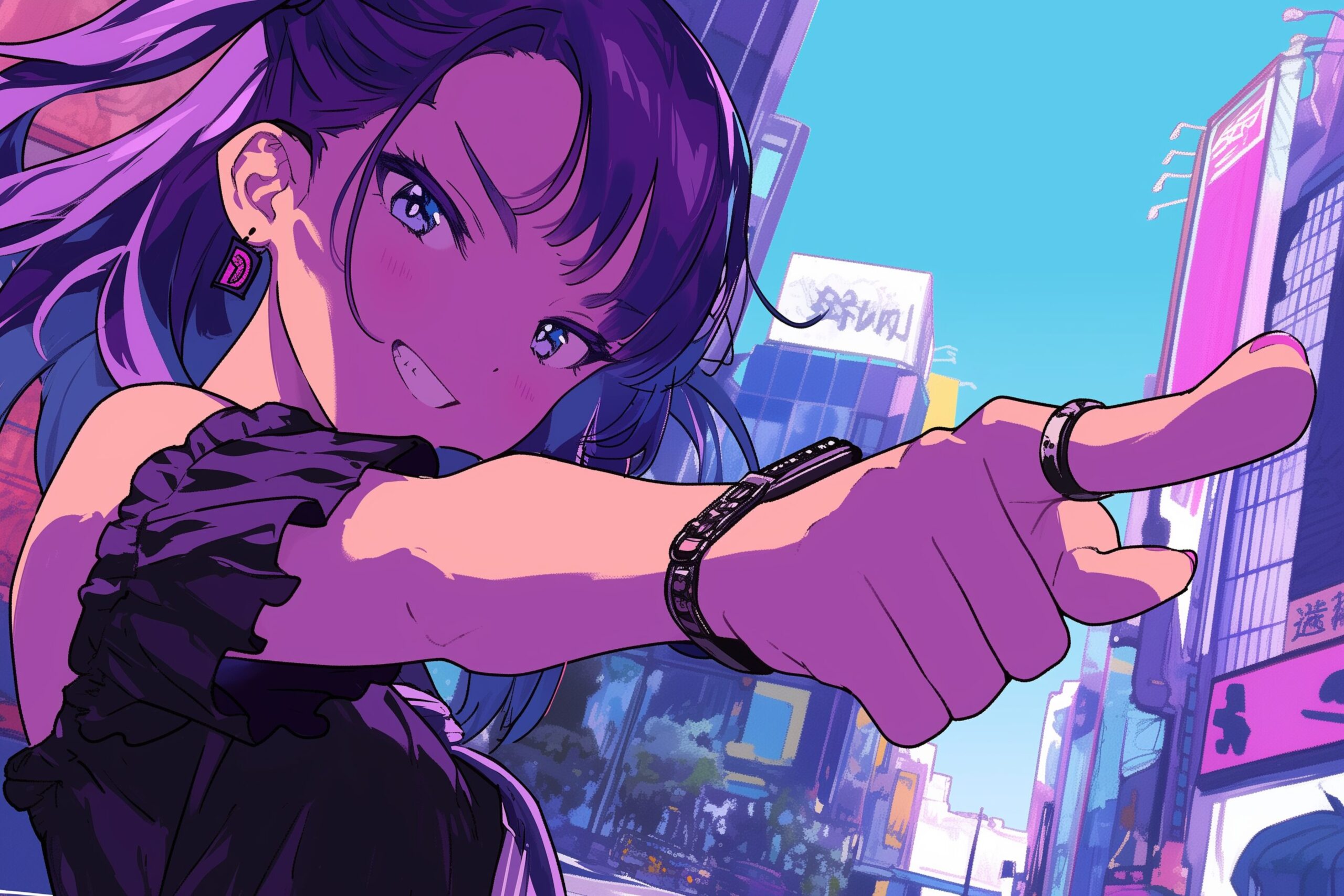 検索タグ:イラスト、ファッション、キャラクター、女性、女、女の子、女子、女の人、アニメ、漫画、マンガ、美人、美女、若い、かわいい、可愛い、カワイイ、人物、顔、美しい、綺麗、きれい、キレイ、アート、お洒落、女子高生、JK、挿絵、夏、春、パステルカラー、春服、インスタ、Instagram、夏、夏服、summer、fashion、パープル、purple、紫、指を差す、ポイント
