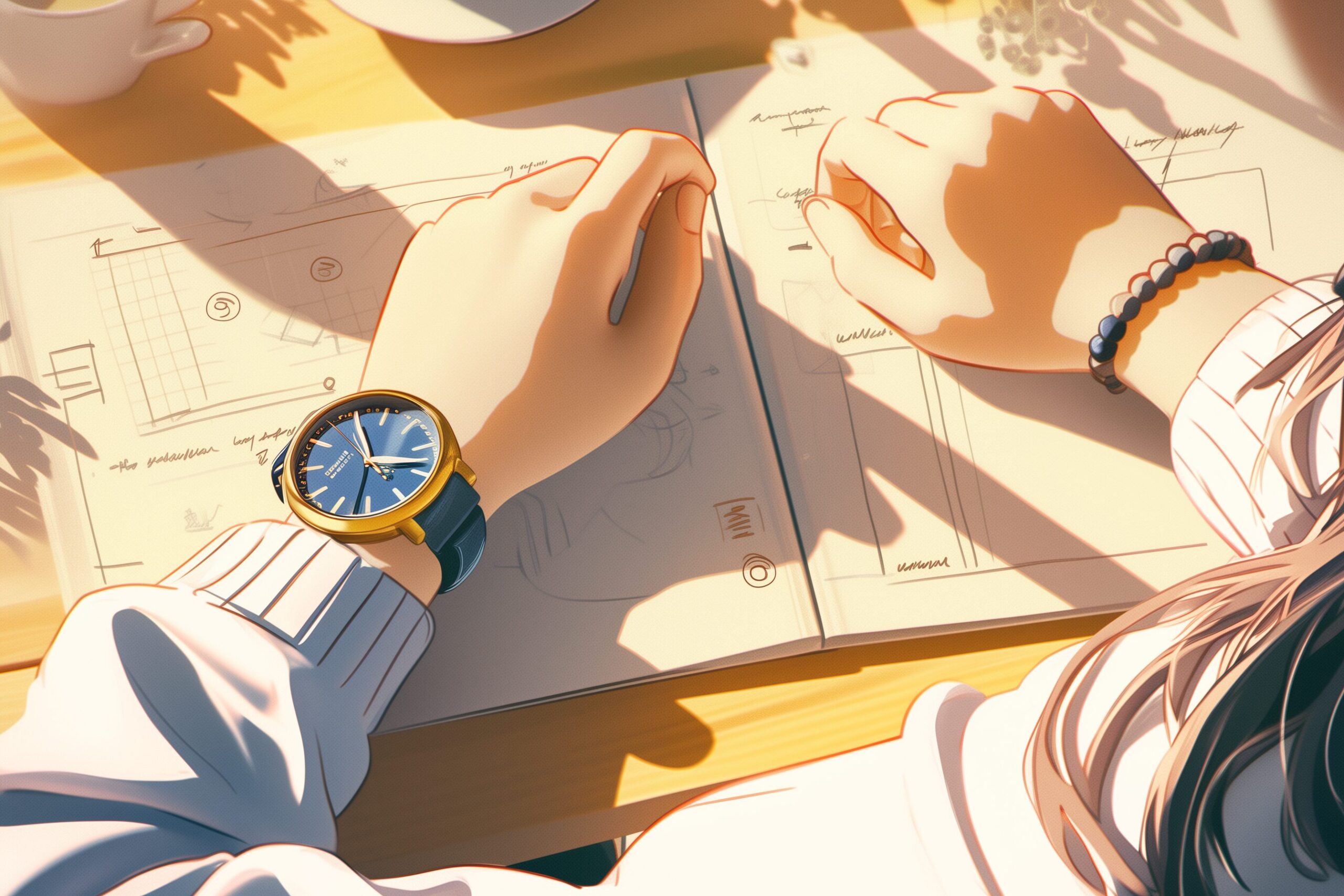 検索タグ:AI生成画像、コピースペース、女性、女、女の子、女子、手、時計、ウォッチ、腕時計、おしゃれ、オシャレ、手元
