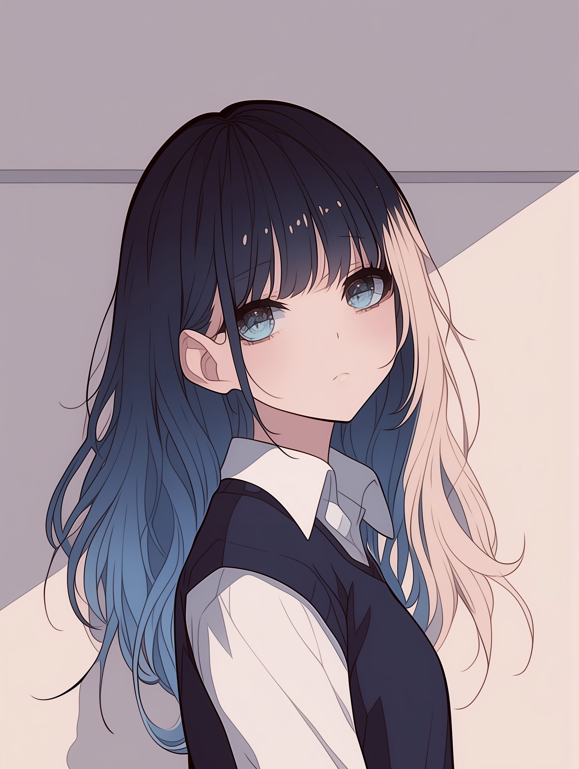 検索タグ:イラスト、ファッション、キャラクター、女性、女、女の子、女子、女の人、アニメ、漫画、マンガ、美人、美女、若い、かわいい、可愛い、カワイイ、人物、顔、美しい、綺麗、きれい、キレイ、アート、お洒落、挿絵、インスタ、Instagram、AI生成画像、fashion、コピースペース、学生、高校生、月森 澪、つきもり みお、無表情、青髪