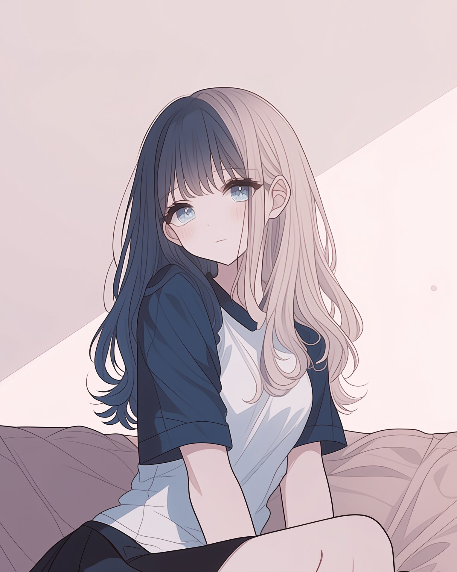 検索タグ:イラスト、ファッション、キャラクター、女性、女、女の子、女子、女の人、アニメ、漫画、マンガ、美人、美女、若い、かわいい、可愛い、カワイイ、人物、顔、美しい、綺麗、きれい、キレイ、アート、お洒落、挿絵、インスタ、Instagram、AI生成画像、fashion、コピースペース、学生、高校生、月森 澪、つきもり みお、無表情、青髪