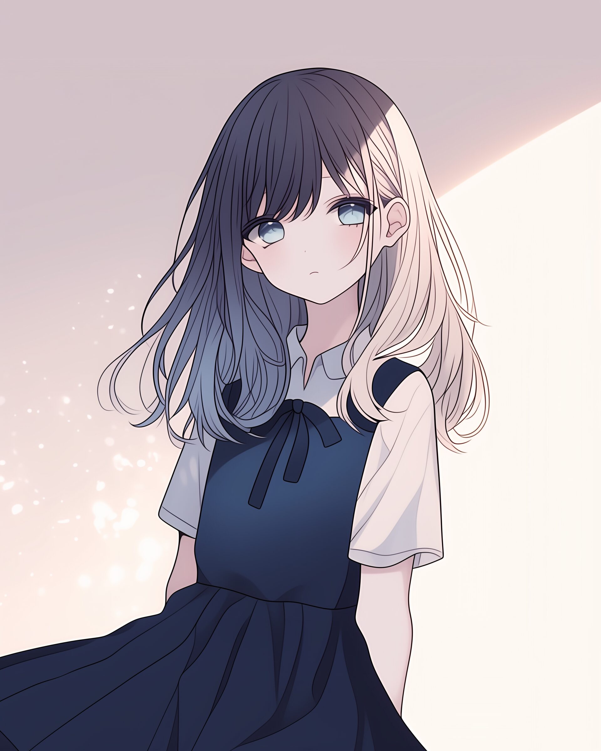 検索タグ:イラスト、ファッション、キャラクター、女性、女、女の子、女子、女の人、アニメ、漫画、マンガ、美人、美女、若い、かわいい、可愛い、カワイイ、人物、顔、美しい、綺麗、きれい、キレイ、アート、お洒落、挿絵、インスタ、Instagram、AI生成画像、fashion、コピースペース、学生、高校生、月森 澪、つきもり みお、無表情、青髪、ワンピース、試着