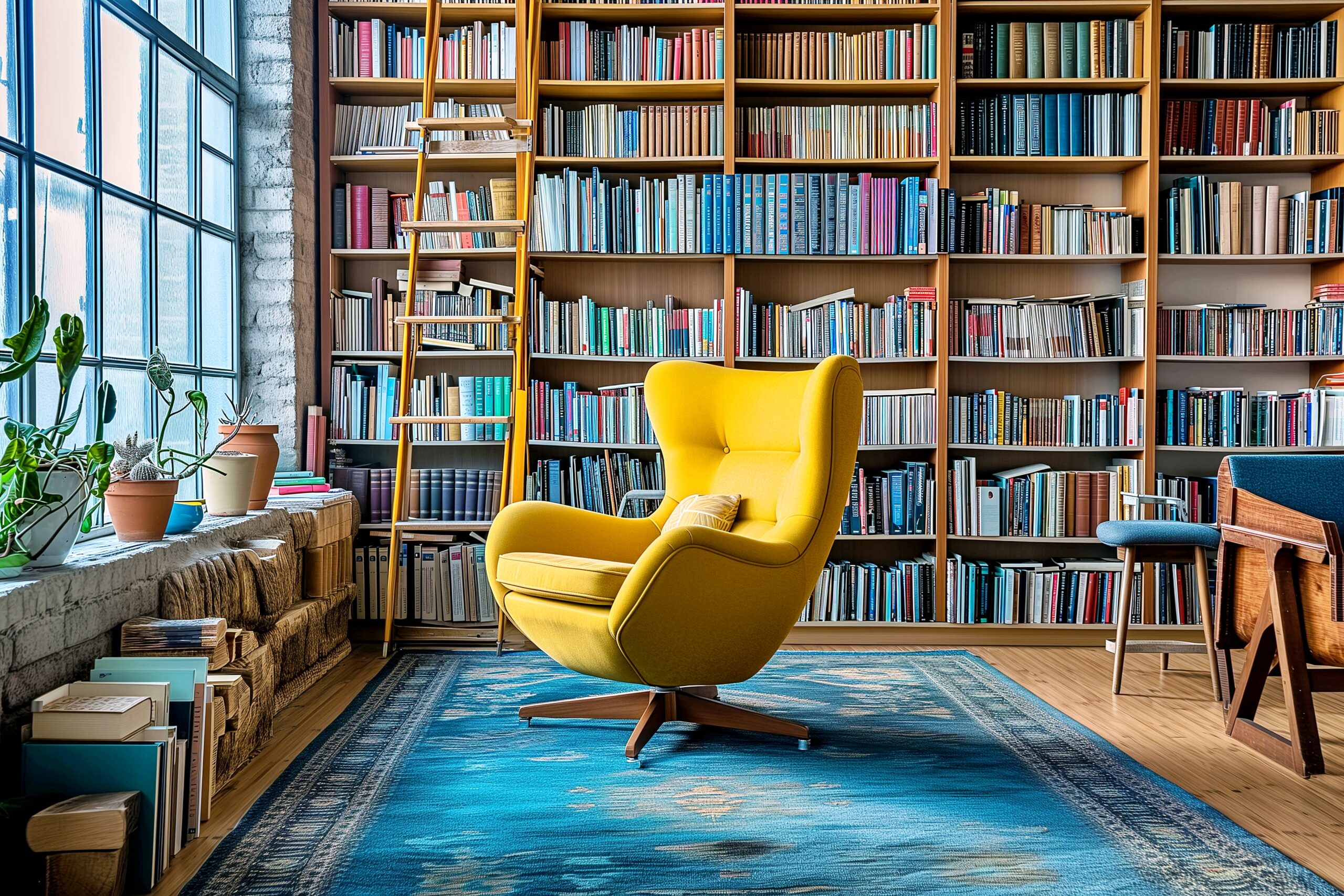 検索タグ:図書館、本屋、書店、AI、店内、本、読書、インテリア、室内、屋内、オシャレ、おしゃれ、お洒落、ソファ、かわいい、レトロ、レトロ感、部屋、本棚
