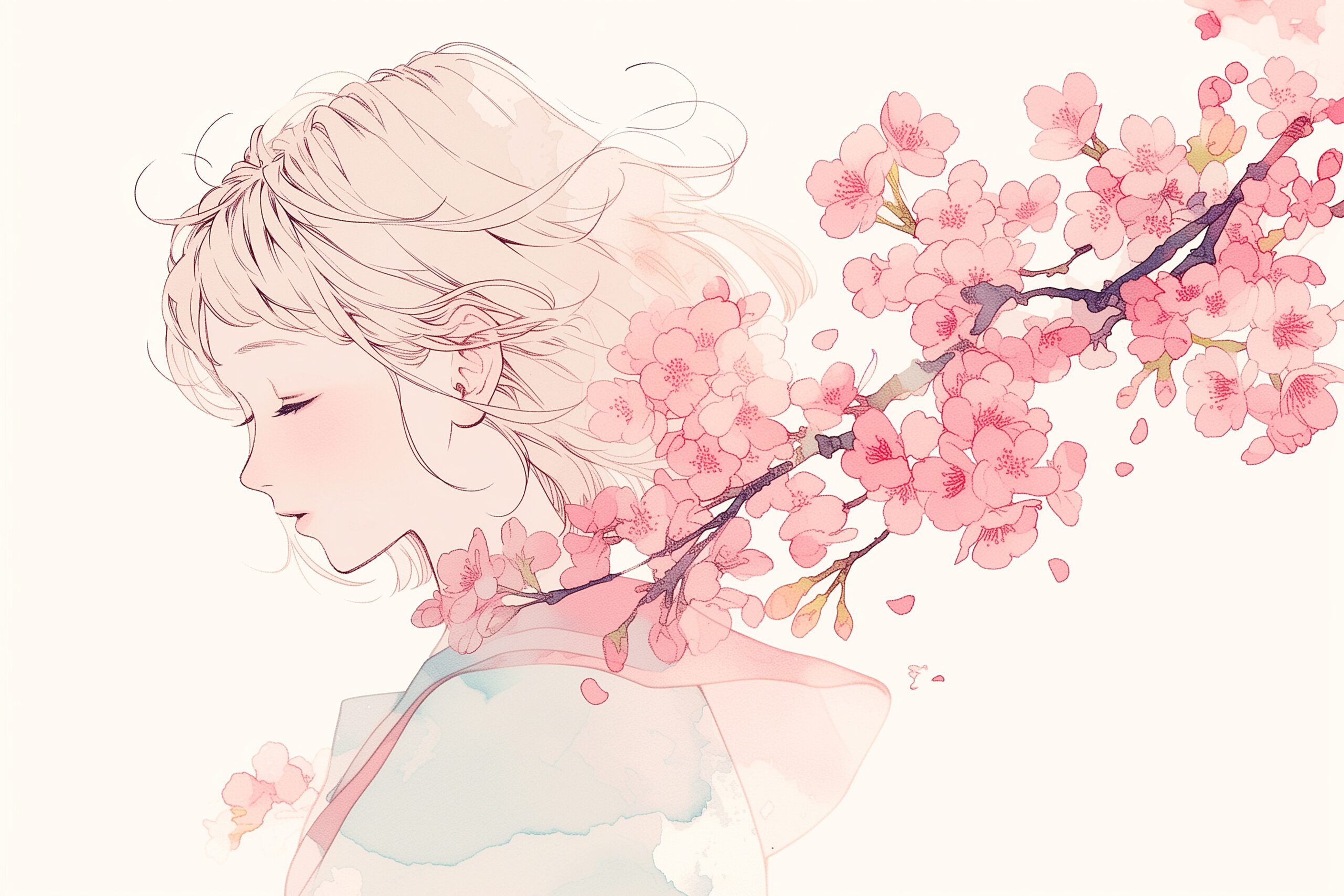 桜と制服姿の女性イラスト03
