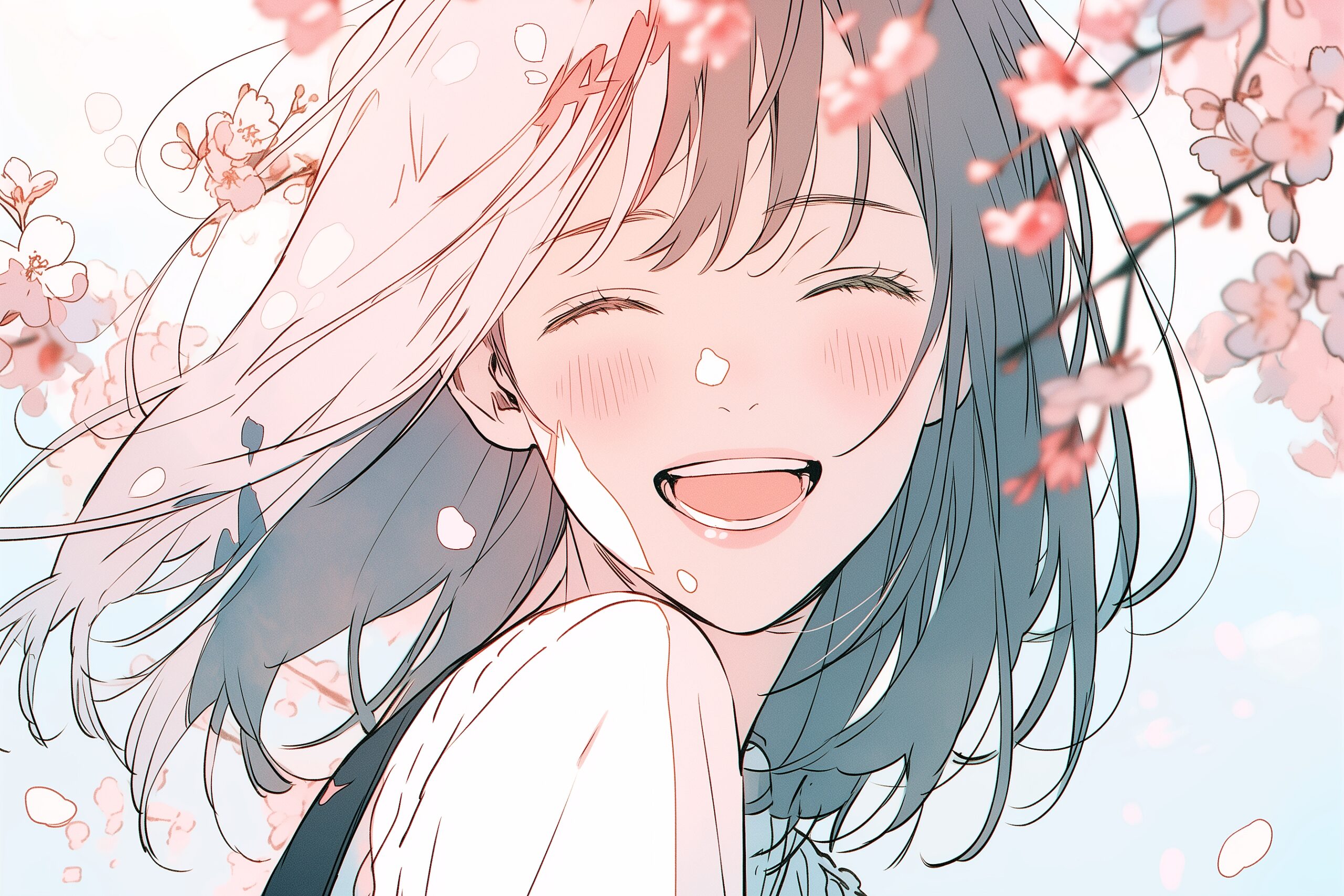 桜と笑顔の女性イラスト01