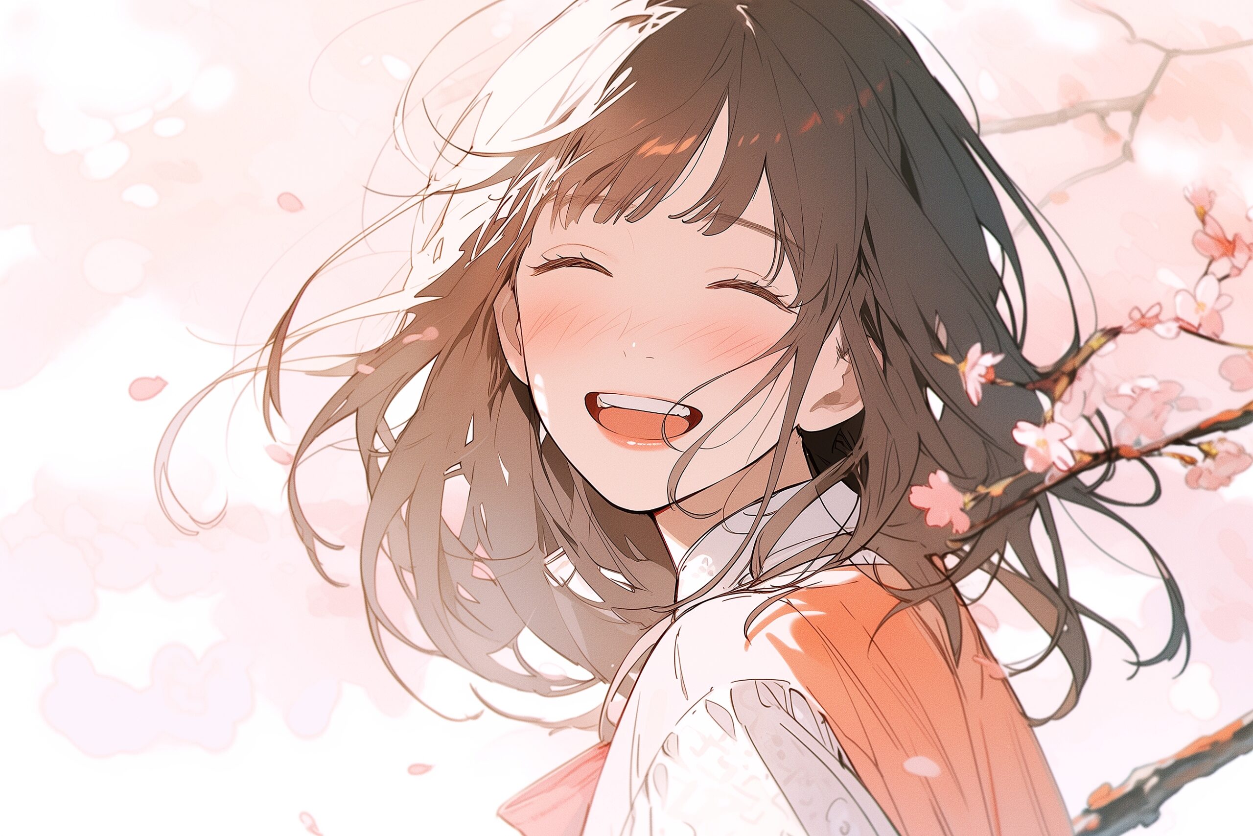 桜と笑顔の女性イラスト03