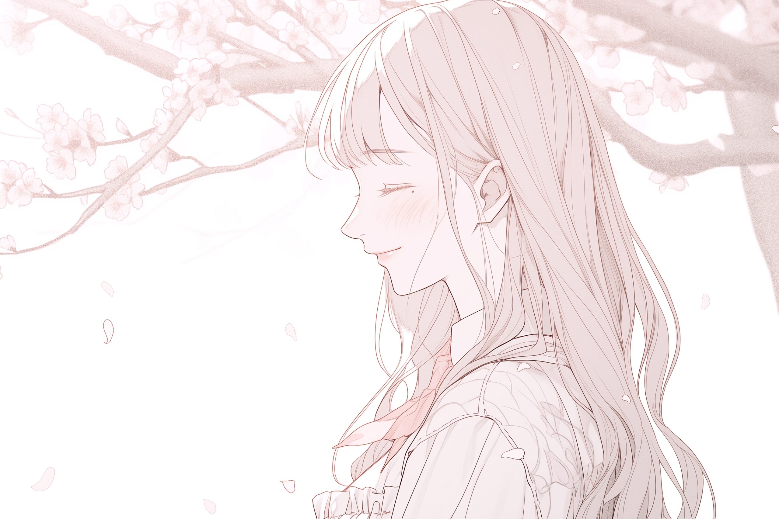 桜と笑顔の美しい女性イラスト03