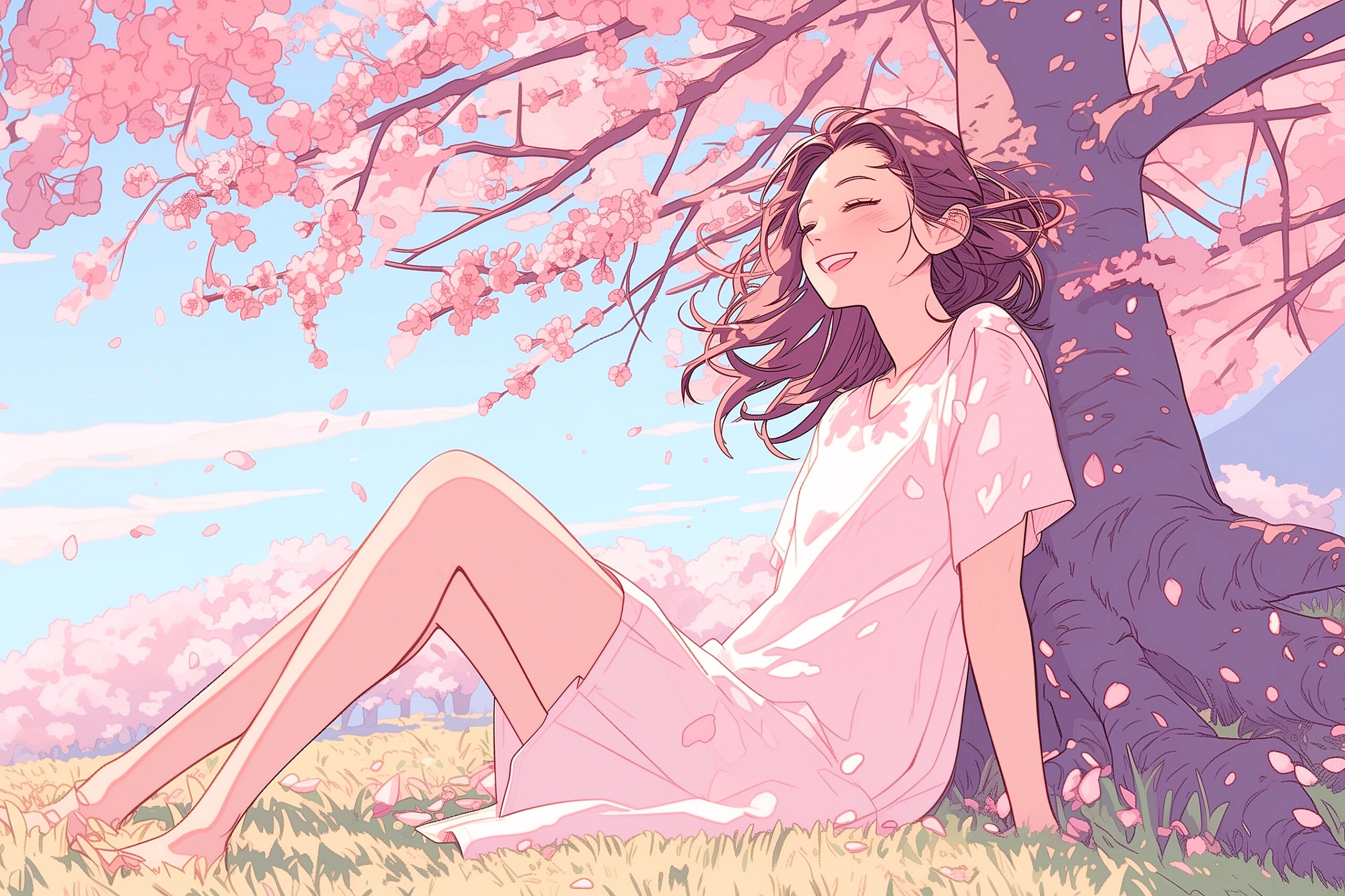 桜と美しい女性イラスト02
