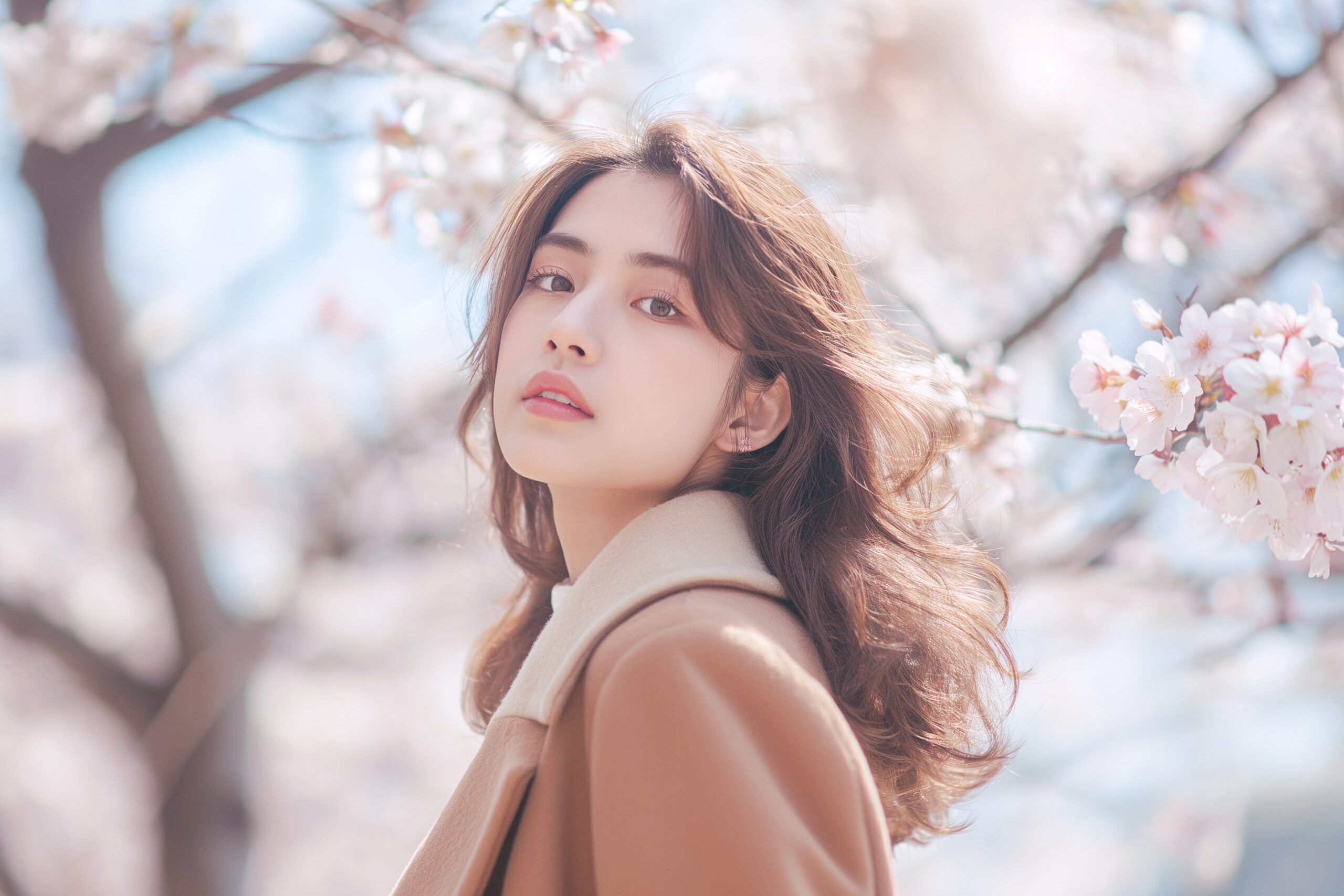 桜と美人女性02