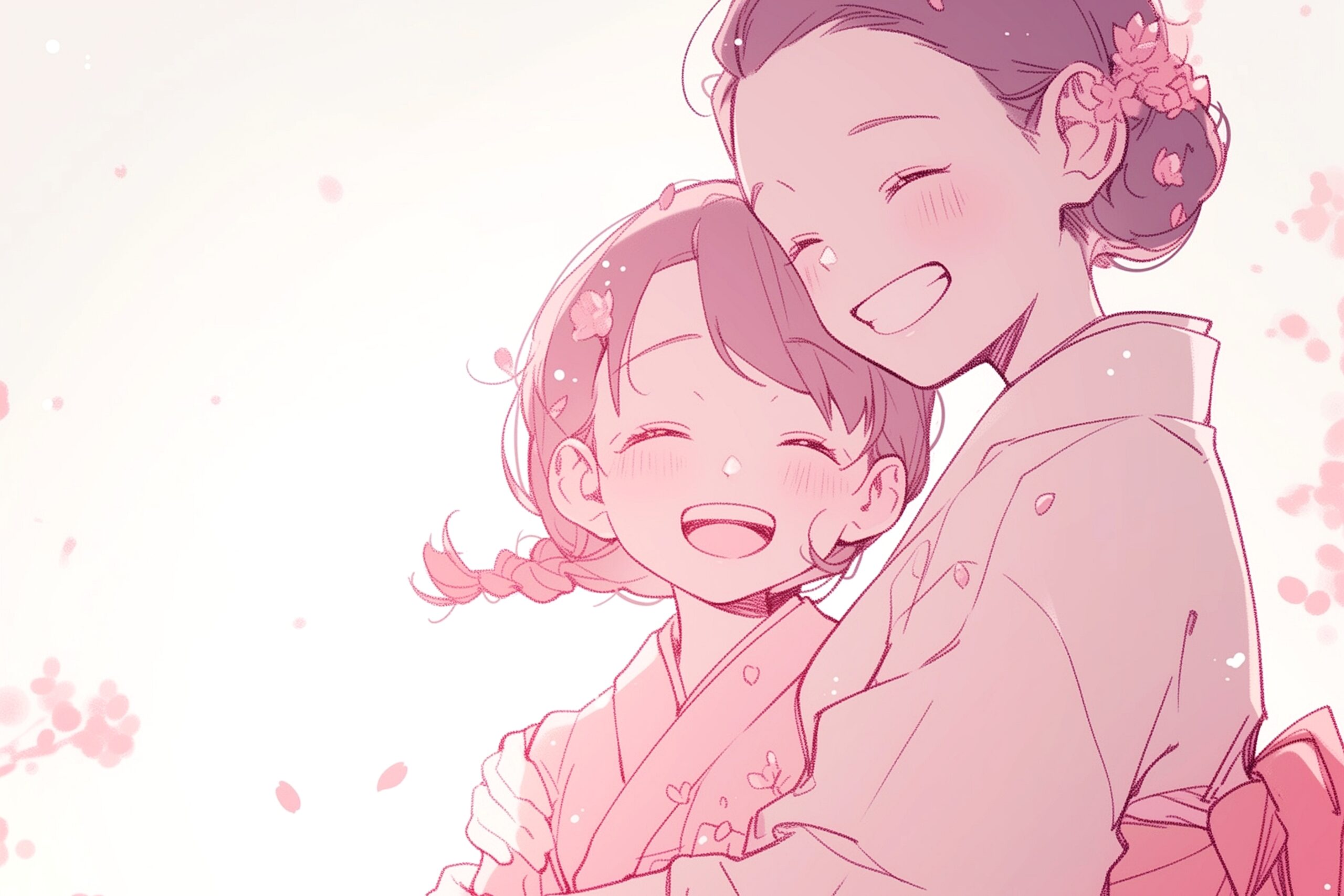 検索タグ:イラスト、ピンク、桜、親子、コピースペース、さくら、サクラ、シングルマザー、シンママ、家族、娘、笑顔、仲良し