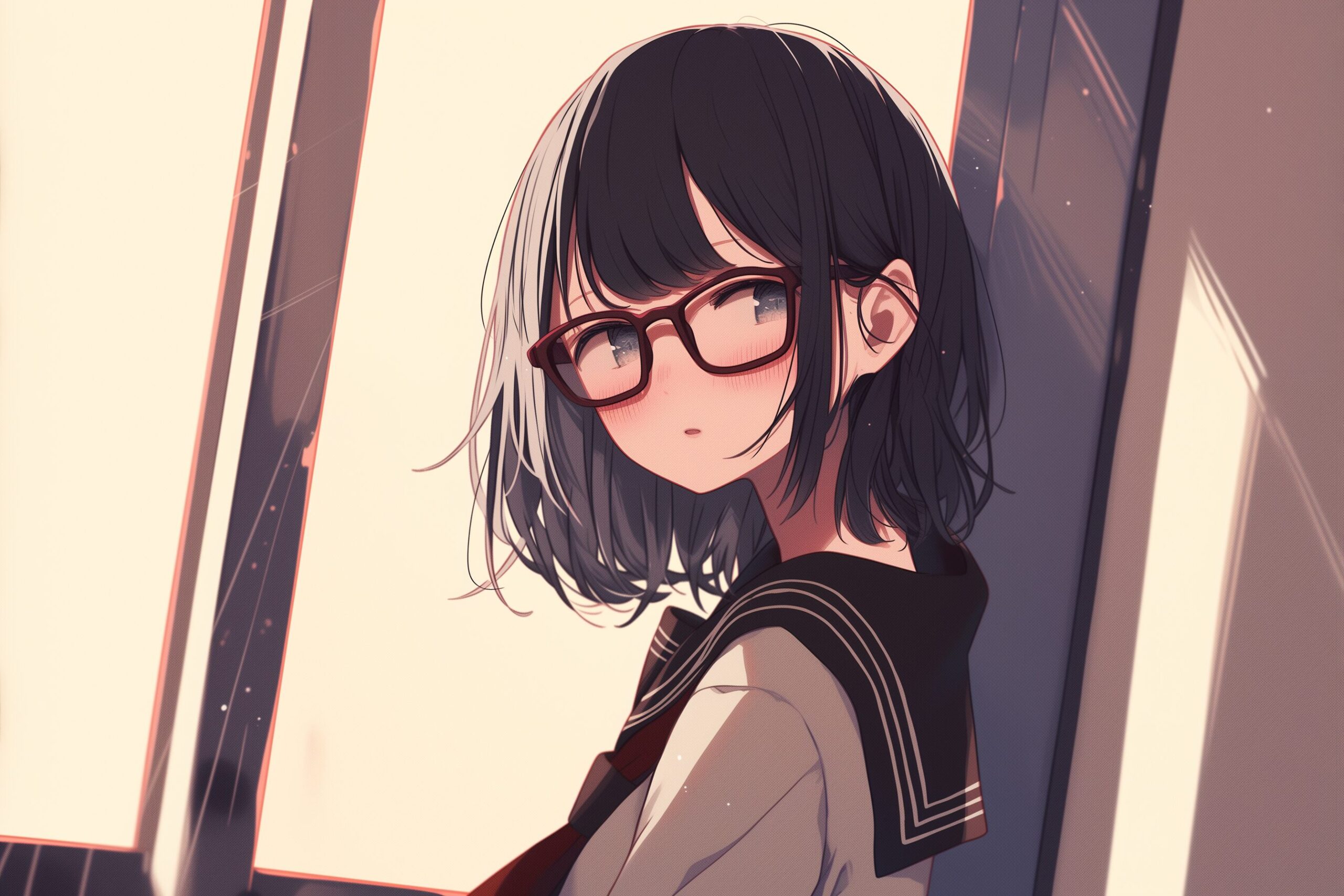 検索タグ:イラスト、キャラクター、女子、女の子、女性、女、女の人、アニメ、漫画、マンガ、若い、人物、顔、美しい、綺麗、きれい、キレイ、アート、お洒落、挿絵、インスタ、Instagram、AI生成画像、コピースペース、かわいい、可愛い、カワイイ、黒髪、橘、たちばな、ゆず、柚、キャラクター、ショートヘア、黒髪、メガネ、眼鏡、めがね、前髪ぱっつん、パッツン、JK、制服、セーラー服、恥ずかしい、照れる、赤面、隠れる