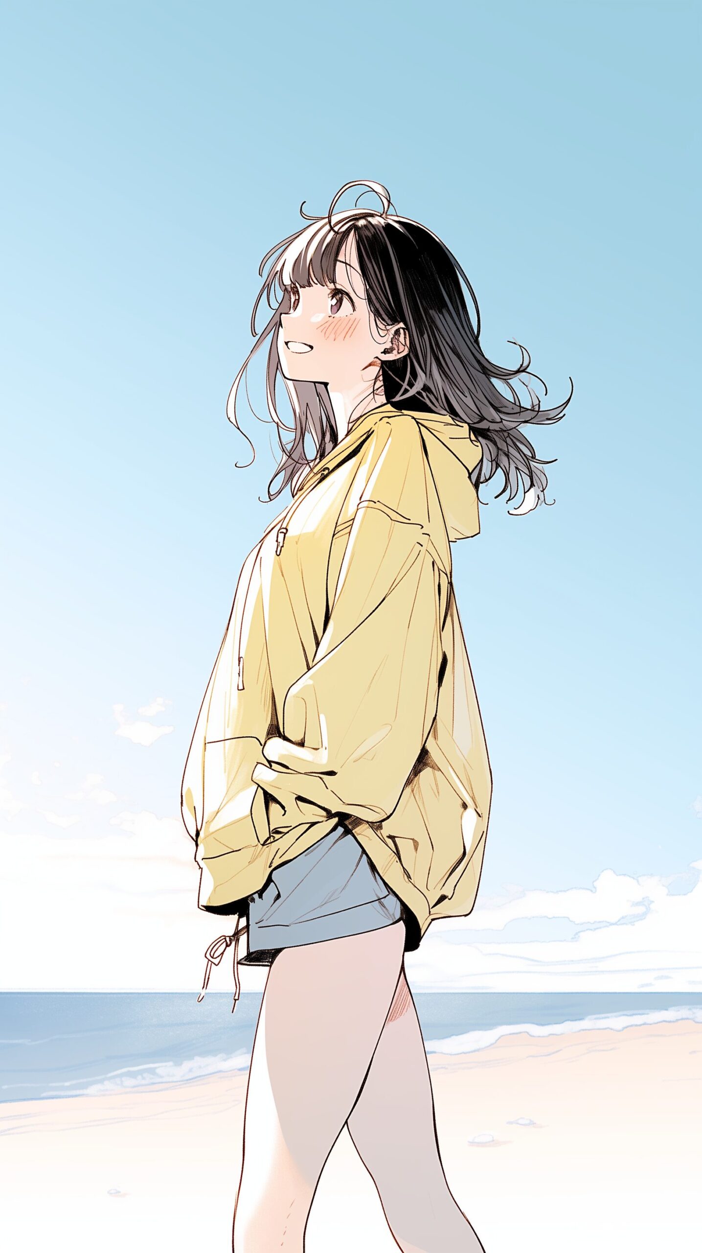 検索タグ:イラスト、ファッション、キャラクター、女性、女、女の子、女子、女の人、アニメ、漫画、マンガ、美人、美女、若い、かわいい、可愛い、カワイイ、人物、顔、美しい、綺麗、きれい、キレイ、アート、お洒落、女子高生、JK、挿絵、夏、春、パステルカラー、トップス、春服、縦長、壁紙、待ち受け画像、wallpaper、海、ビーチ