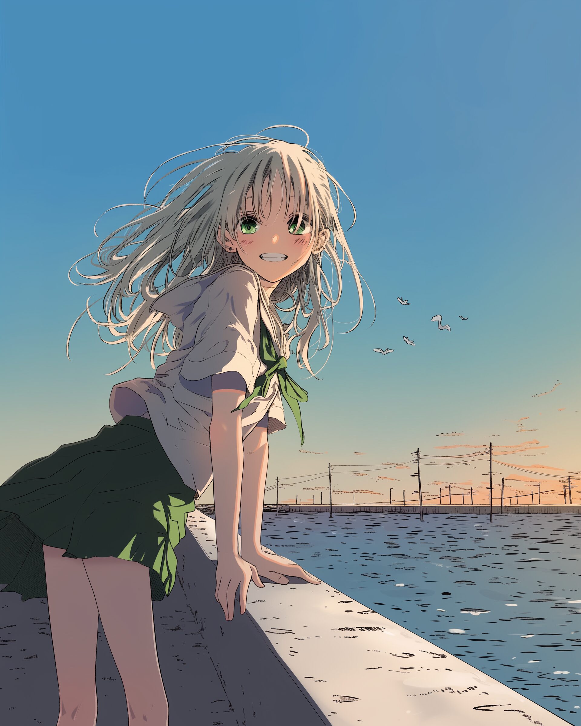 検索タグ:イラスト、ファッション、キャラクター、女性、女、女の子、女子、女の人、アニメ、漫画、マンガ、美人、美女、若い、かわいい、可愛い、カワイイ、人物、顔、美しい、綺麗、きれい、キレイ、アート、お洒落、挿絵、インスタ、Instagram、AI生成画像、fashion、コピースペース、銀髪、笑顔、パーカー女子、海辺、海岸、散歩、海沿い