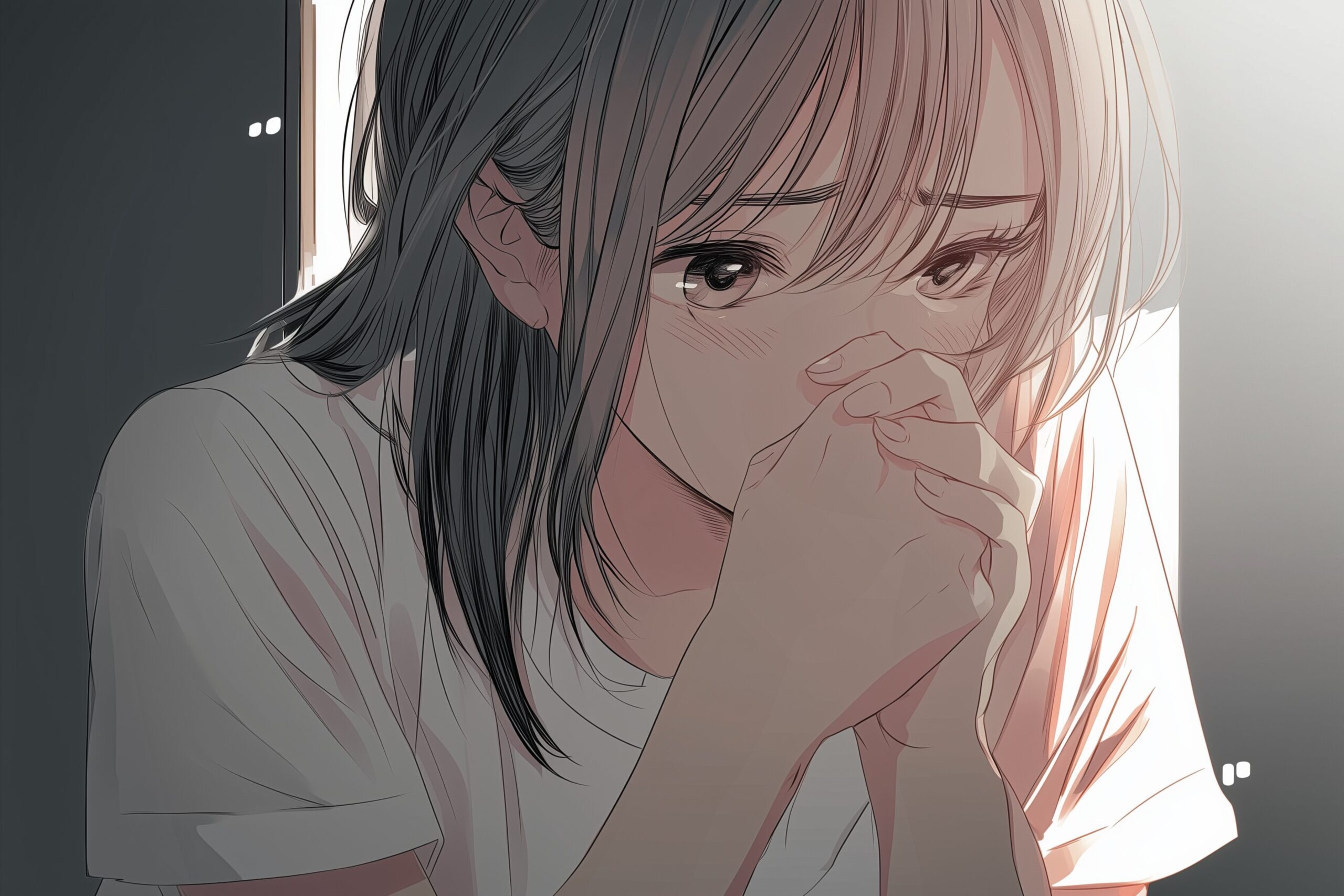 検索タグ:イラスト、ファッション、キャラクター、女性、女、女の子、女子、女の人、アニメ、漫画、マンガ、美人、美女、若い、かわいい、可愛い、カワイイ、人物、顔、美しい、綺麗、きれい、キレイ、アート、お洒落、挿絵、インスタ、Instagram、AI生成画像、fashion、コピースペース、涙、泣く、悲しい、恋愛、失恋、恋、愛、悲しみ、悲しむ
