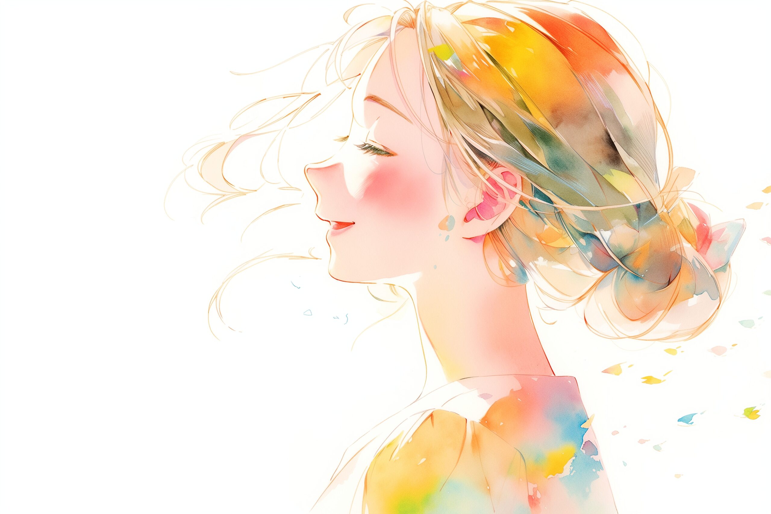 検索タグ:イラスト、キャラクター、女性、女、女の子、女子、女の人、アニメ、漫画、マンガ、美人、美女、若い、かわいい、可愛い、カワイイ、白背景、白バック、萌え、萌え系、萌えキャラ、人物、顔、美しい、水彩、綺麗、きれい、キレイ、芸術、水彩画、アート、絵の具、淡い
