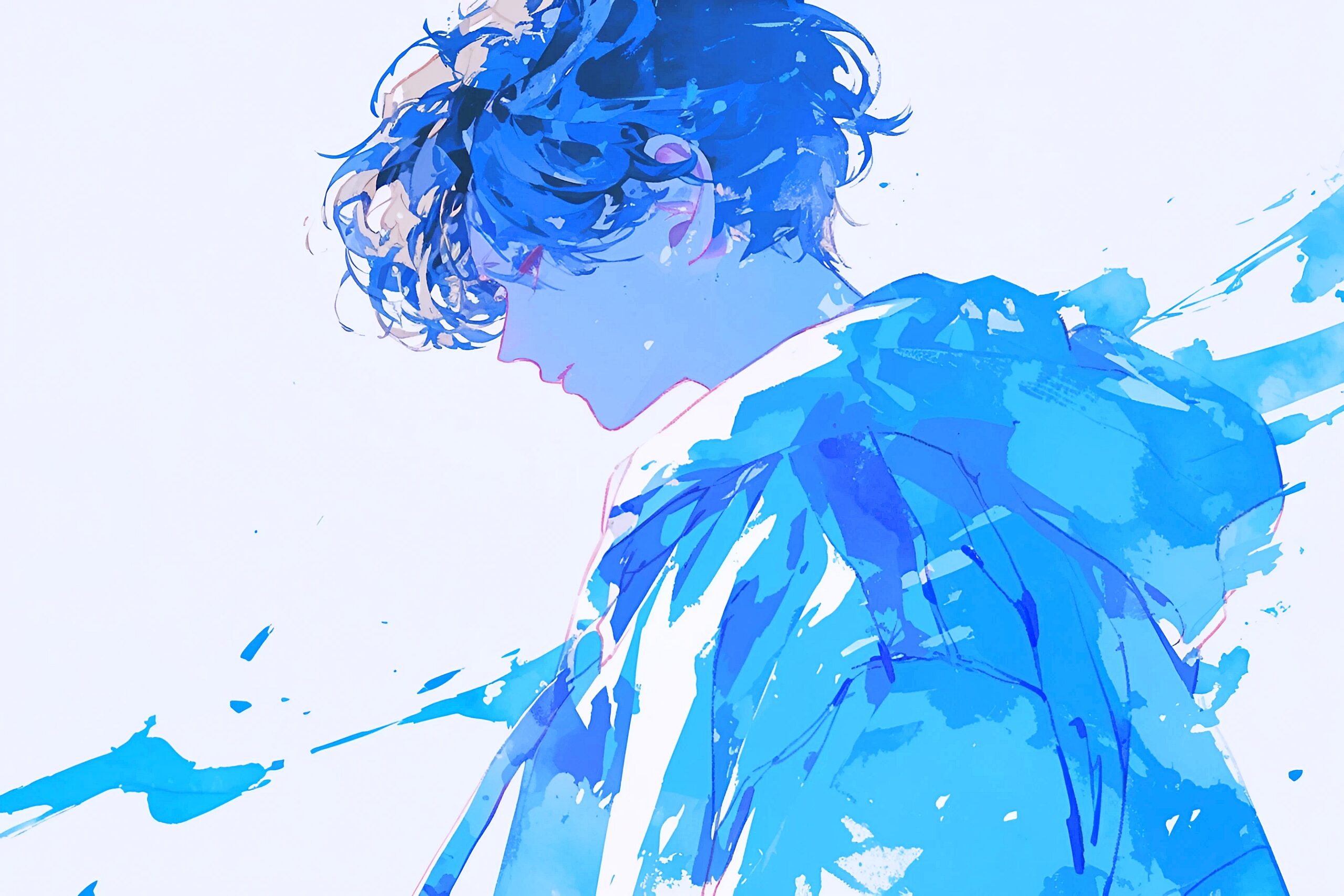 検索タグ:イラスト、キャラクター、アニメ、漫画、マンガ、若い、かわいい、可愛い、カワイイ、白背景、白バック、萌え、萌え系、萌えキャラ、人物、顔、美しい、水彩、綺麗、きれい、キレイ、芸術、水彩画、アート、絵の具、淡い、青、ブルー、かっこいい、カッコイイ、男性、男、、男の人、メンズ