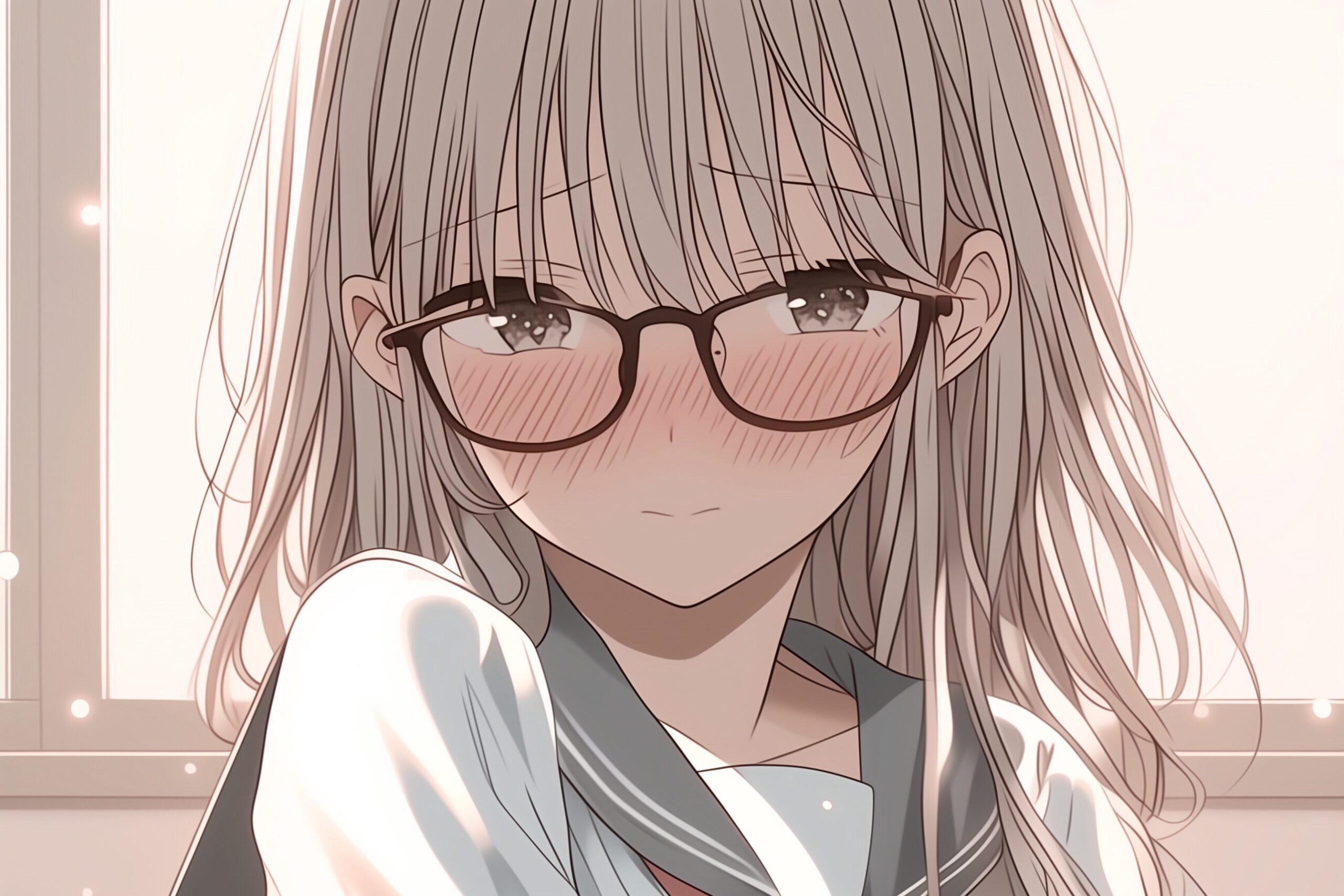 検索タグ:イラスト、ファッション、キャラクター、女性、女、女の子、女子、女の人、アニメ、漫画、マンガ、美人、美女、若い、かわいい、可愛い、カワイイ、人物、顔、美しい、綺麗、きれい、キレイ、アート、お洒落、挿絵、インスタ、Instagram、AI生成画像、fashion、コピースペース、学生、高校生、銀髪、シルバーヘア、眼鏡、メガネ、めがね、恥ずかしい、緊張、照れる、ドキドキ、胸キュン、神様勇気をください