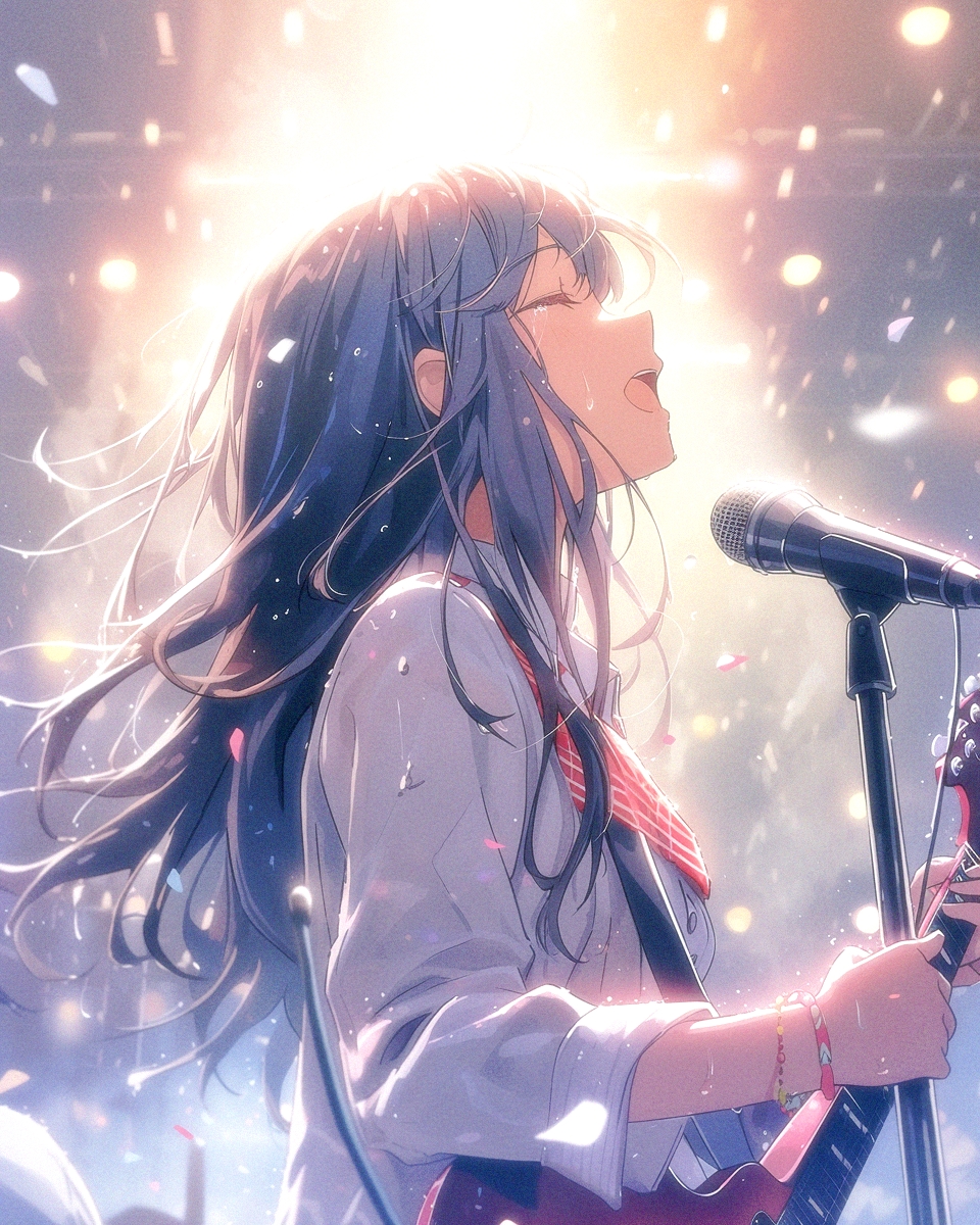 検索タグ:イラスト、アニメ、漫画、女子高生、jk、女の子、女性、女、女子、制服、セーラー服、ギター、音楽、ギターリスト、ライブ、切ない、切ない表情、コンサート、文化祭、コスプレ、かわいい、可愛い、カワイイ、熱唱、歌う、アーティスト、歌手、涙、歌、マイク、イラストレーション
