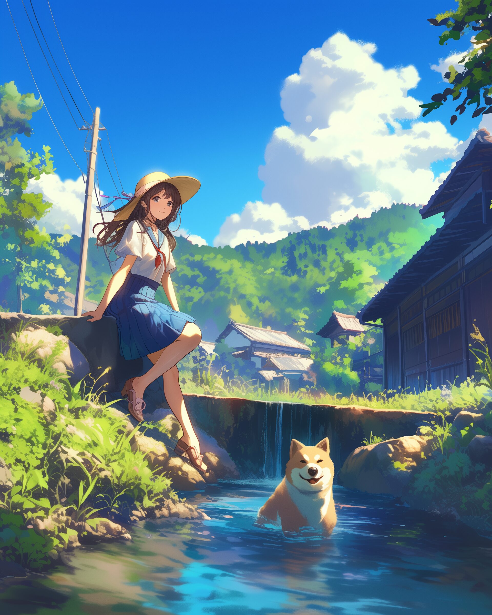 検索タグ:イラスト、ファッション、キャラクター、女性、女、女の子、女子、女の人、アニメ、漫画、マンガ、美人、美女、若い、かわいい、可愛い、カワイイ、人物、顔、美しい、綺麗、きれい、キレイ、アート、お洒落、女子高生、JK、挿絵、夏、春、パステルカラー、春服、インスタ、Instagram、夏、夏服、summer、fashion、サムネイル、アイキャッチ、コピースペース、犬、柴犬、shibainu、川、川辺