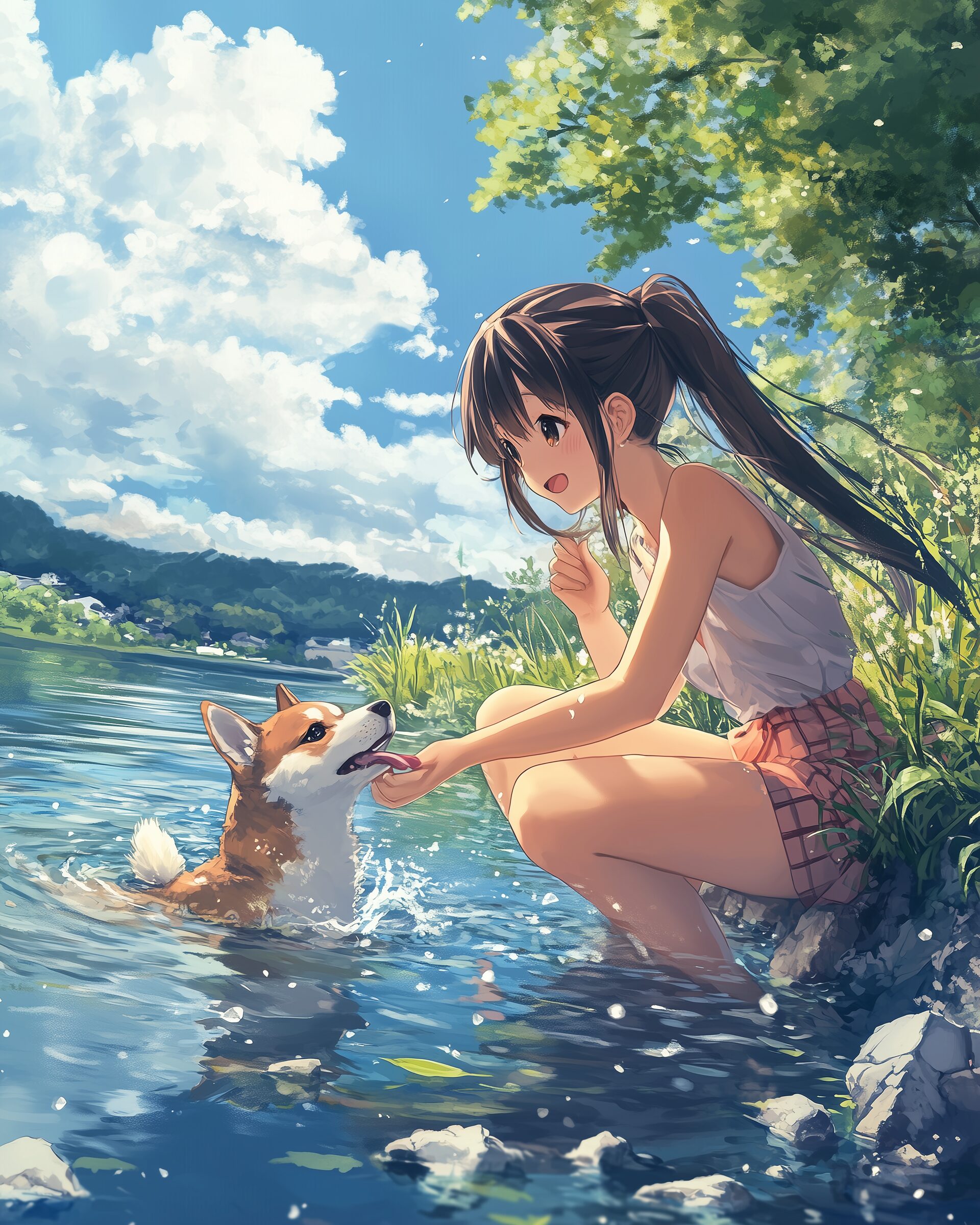 検索タグ:イラスト、ファッション、キャラクター、女性、女、女の子、女子、女の人、アニメ、漫画、マンガ、美人、美女、若い、かわいい、可愛い、カワイイ、人物、顔、美しい、綺麗、きれい、キレイ、アート、お洒落、女子高生、JK、挿絵、夏、春、パステルカラー、春服、インスタ、Instagram、夏、夏服、summer、fashion、サムネイル、アイキャッチ、コピースペース、犬、柴犬、shibainu、川、川辺