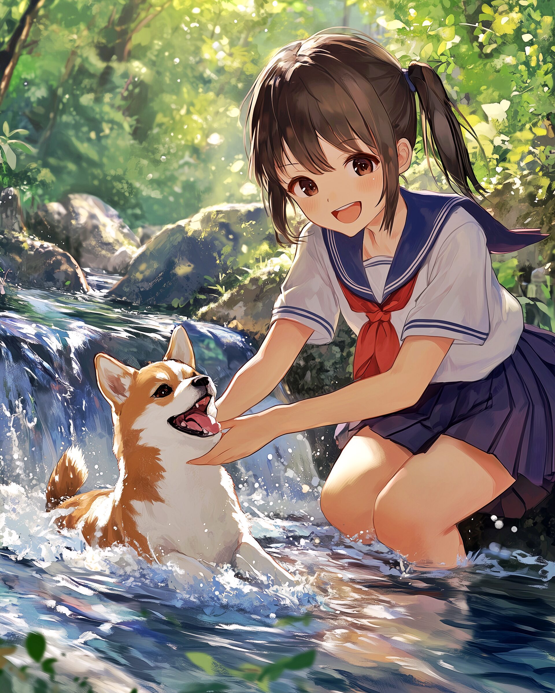 検索タグ:イラスト、ファッション、キャラクター、女性、女、女の子、女子、女の人、アニメ、漫画、マンガ、美人、美女、若い、かわいい、可愛い、カワイイ、人物、顔、美しい、綺麗、きれい、キレイ、アート、お洒落、女子高生、JK、挿絵、夏、春、パステルカラー、春服、インスタ、Instagram、夏、夏服、summer、fashion、サムネイル、アイキャッチ、コピースペース、犬、柴犬、shibainu、川、川辺
