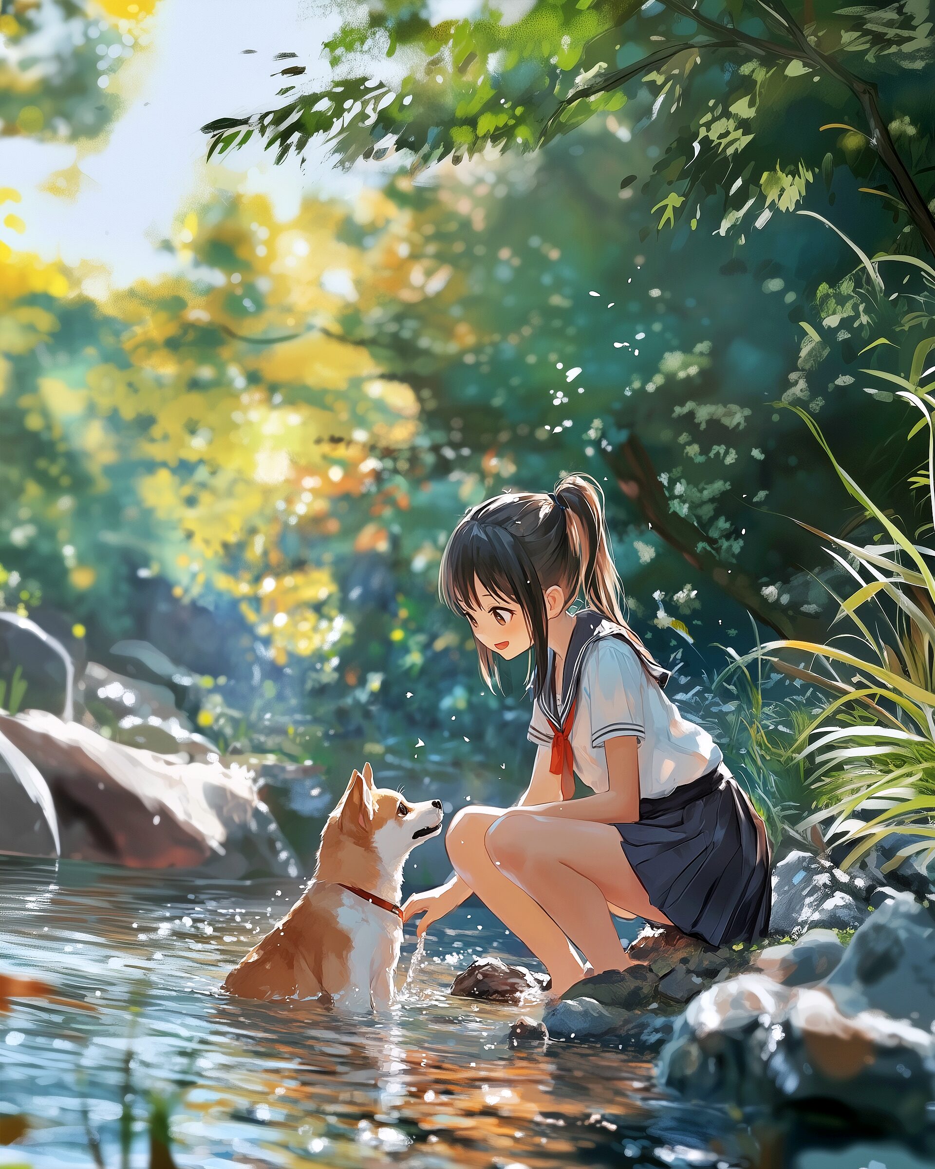 検索タグ:イラスト、ファッション、キャラクター、女性、女、女の子、女子、女の人、アニメ、漫画、マンガ、美人、美女、若い、かわいい、可愛い、カワイイ、人物、顔、美しい、綺麗、きれい、キレイ、アート、お洒落、女子高生、JK、挿絵、夏、春、パステルカラー、春服、インスタ、Instagram、夏、夏服、summer、fashion、サムネイル、アイキャッチ、コピースペース、犬、柴犬、shibainu、川、川辺