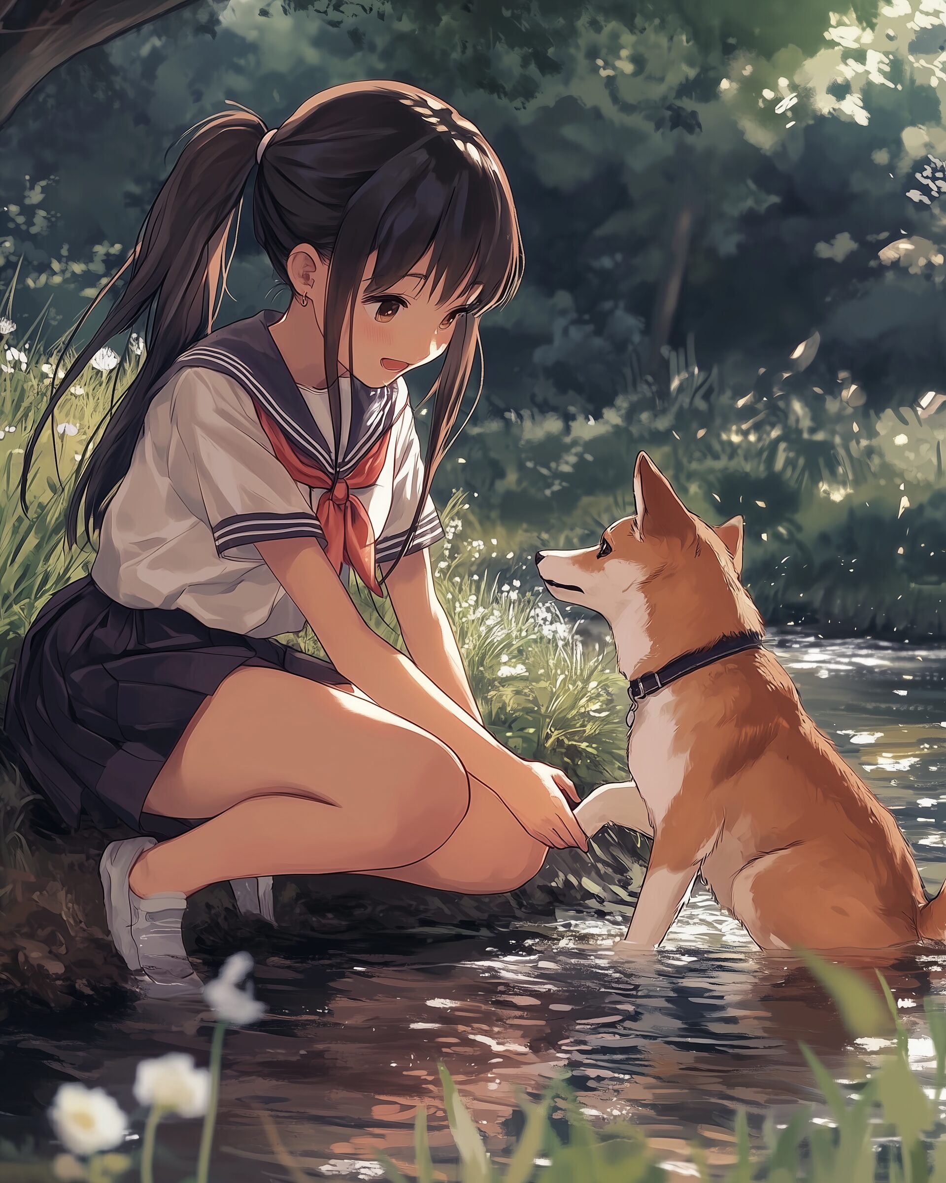 検索タグ:イラスト、ファッション、キャラクター、女性、女、女の子、女子、女の人、アニメ、漫画、マンガ、美人、美女、若い、かわいい、可愛い、カワイイ、人物、顔、美しい、綺麗、きれい、キレイ、アート、お洒落、女子高生、JK、挿絵、夏、春、パステルカラー、春服、インスタ、Instagram、夏、夏服、summer、fashion、サムネイル、アイキャッチ、コピースペース、犬、柴犬、shibainu、川、川辺