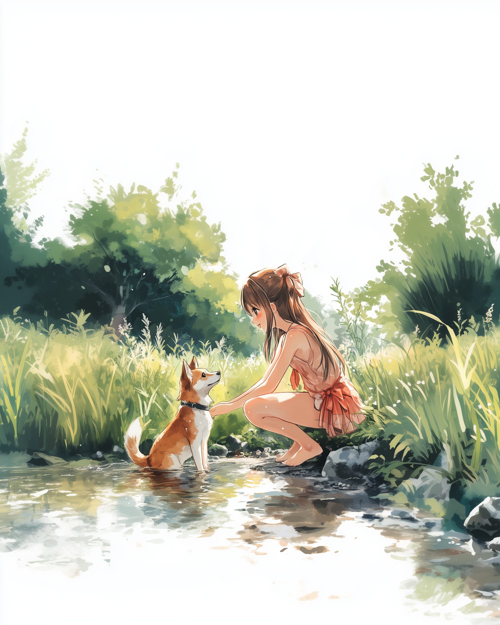 検索タグ:イラスト、ファッション、キャラクター、女性、女、女の子、女子、女の人、アニメ、漫画、マンガ、美人、美女、若い、かわいい、可愛い、カワイイ、人物、顔、美しい、綺麗、きれい、キレイ、アート、お洒落、女子高生、JK、挿絵、夏、春、パステルカラー、春服、インスタ、Instagram、夏、夏服、summer、fashion、サムネイル、アイキャッチ、コピースペース、犬、柴犬、shibainu、川、川辺