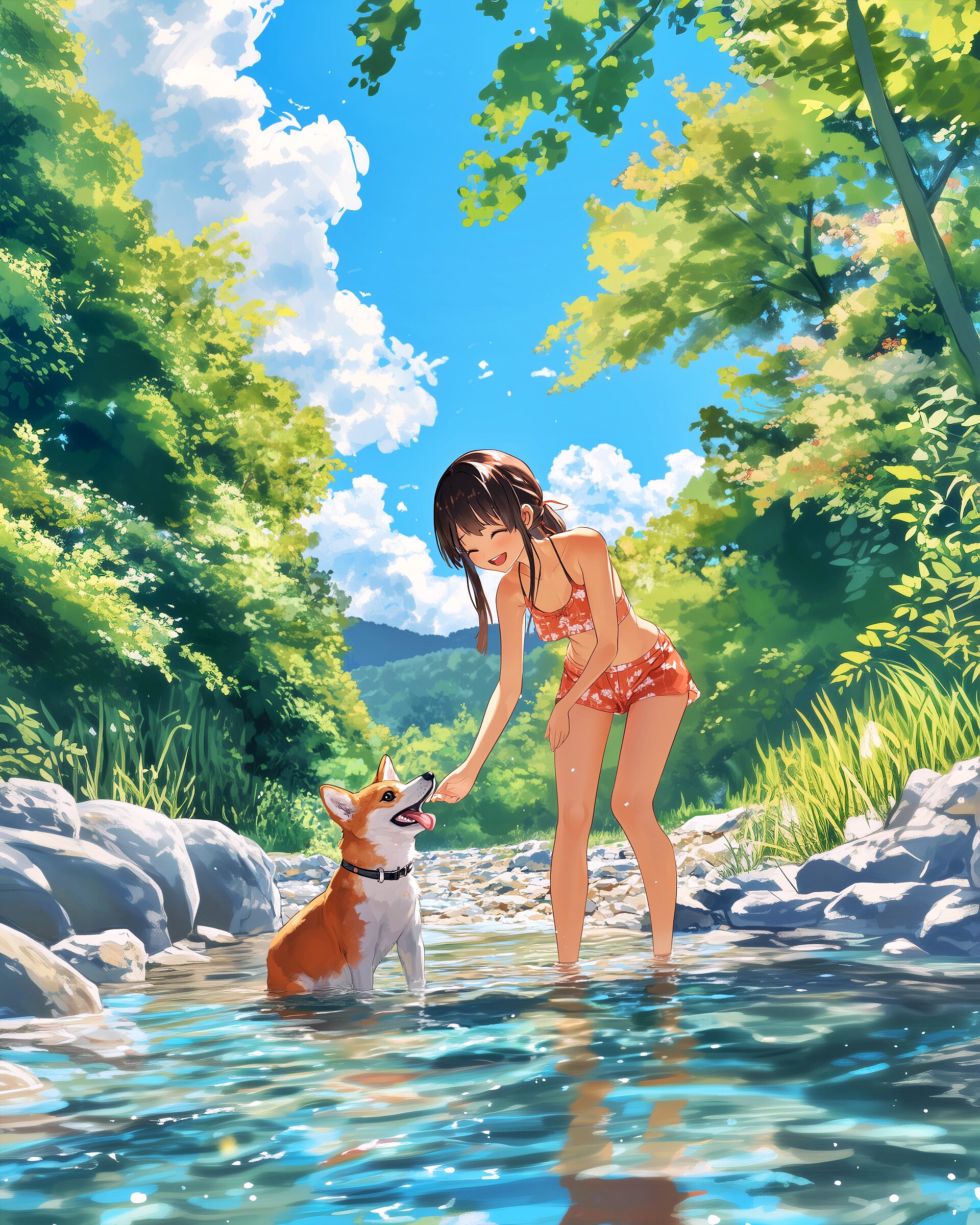 検索タグ:イラスト、ファッション、キャラクター、女性、女、女の子、女子、女の人、アニメ、漫画、マンガ、美人、美女、若い、かわいい、可愛い、カワイイ、人物、顔、美しい、綺麗、きれい、キレイ、アート、お洒落、女子高生、JK、挿絵、夏、春、パステルカラー、春服、インスタ、Instagram、夏、夏服、summer、fashion、サムネイル、アイキャッチ、コピースペース、犬、柴犬、shibainu、川、川辺