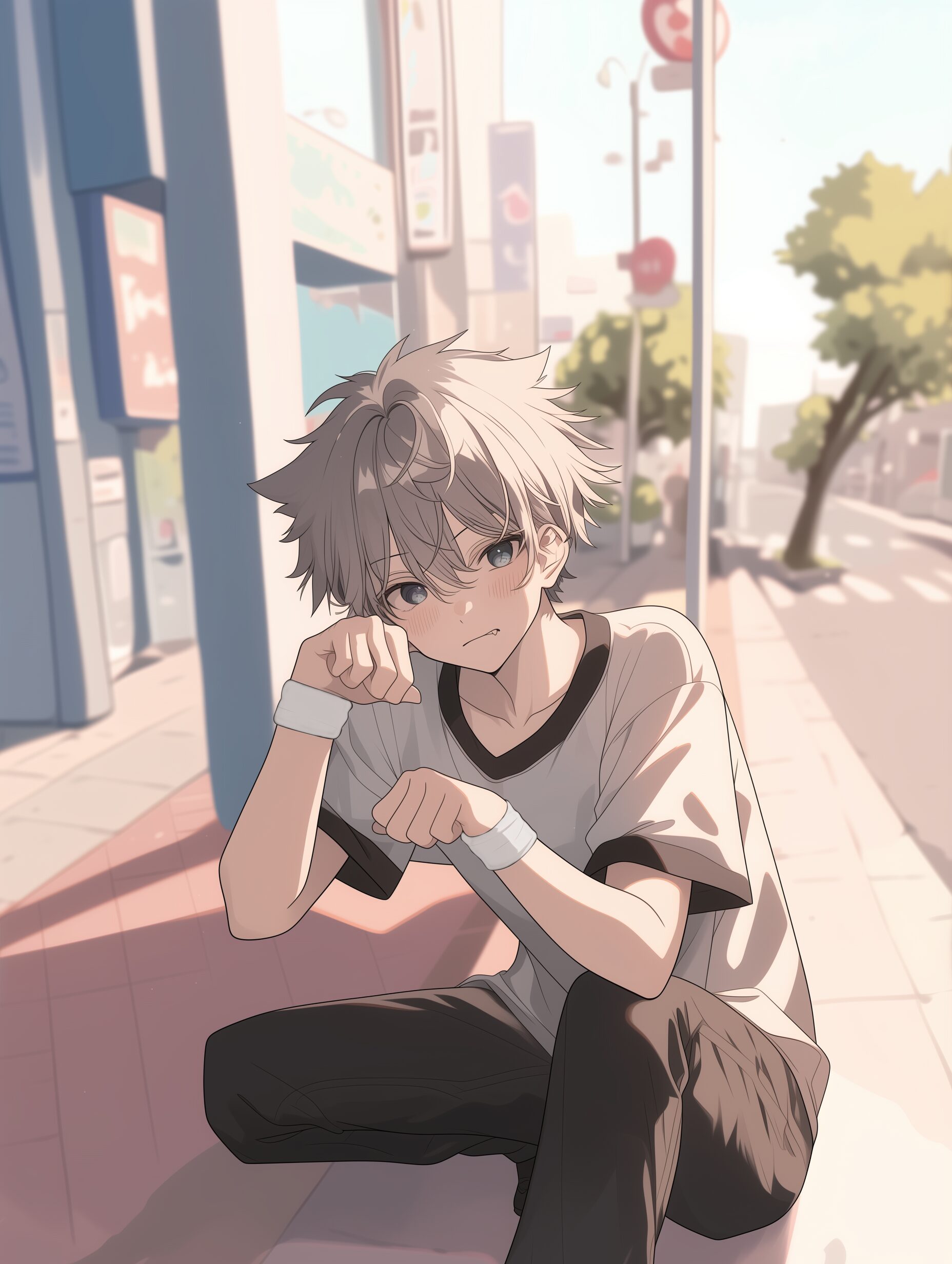 検索タグ:イラスト、ファッション、キャラクター、男性、男、男子、男の子、イケメン、男の人、アニメ、漫画、マンガ、若い、人物、顔、アート、挿絵、インスタ、Instagram、AI生成画像、fashion、コピースペース、学生、高校生、中学生、銀髪、シルバーヘア、猫ポーズ、ねこ、ネコ、にゃー、ニャー、meow、にゃんこ、ニャンコ、Nyanko
