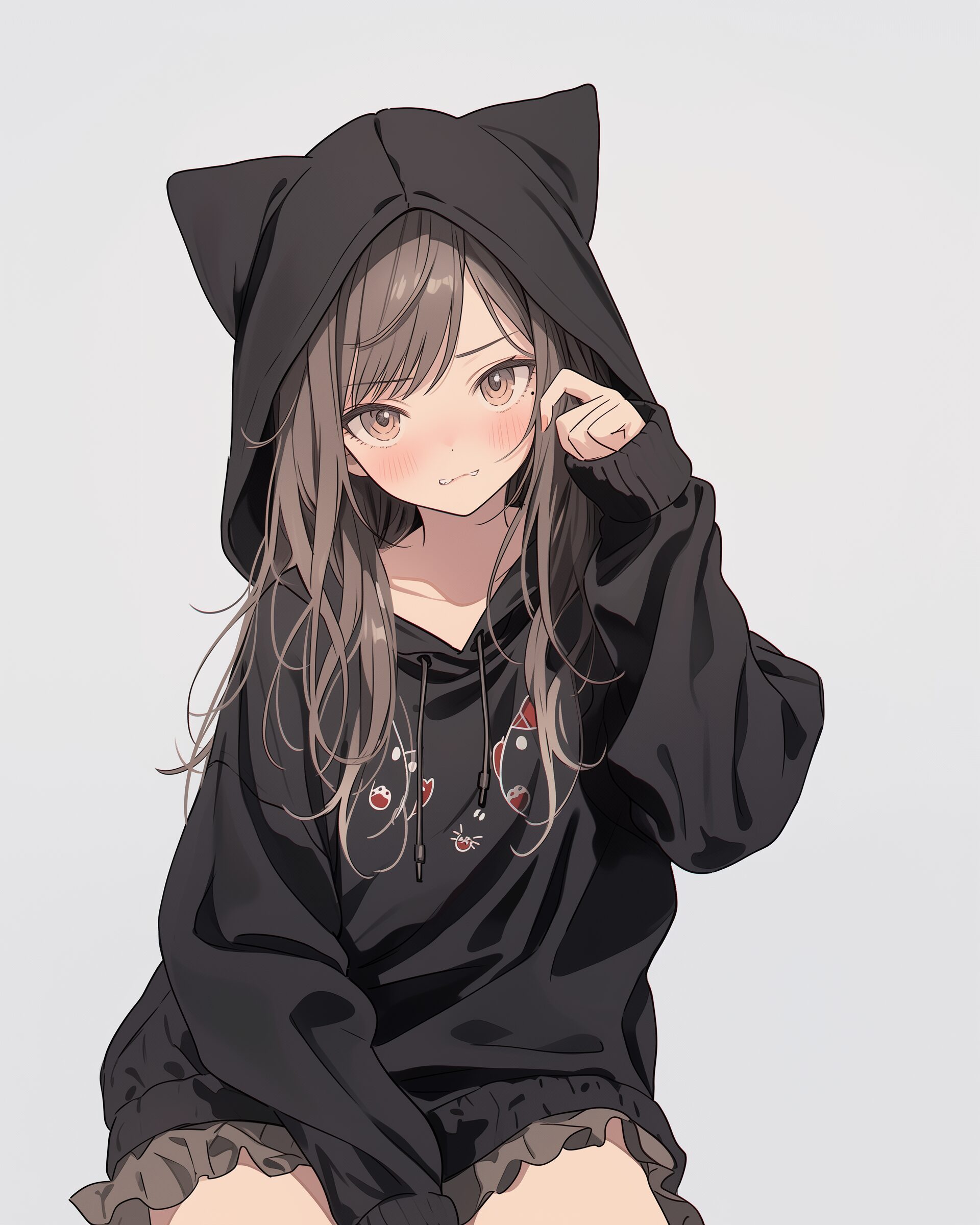 検索タグ:イラスト、ファッション、キャラクター、女性、女、女の子、女子、女の人、アニメ、漫画、マンガ、美人、美女、若い、かわいい、可愛い、カワイイ、人物、顔、美しい、綺麗、きれい、キレイ、アート、お洒落、挿絵、インスタ、Instagram、AI生成画像、fashion、コピースペース、おしゃれ、オシャレ、秋、秋服、待ち合わせ、秋冬ファッション、パーカー女子、猫耳、ダーク、黒、BLACK、ブラック、