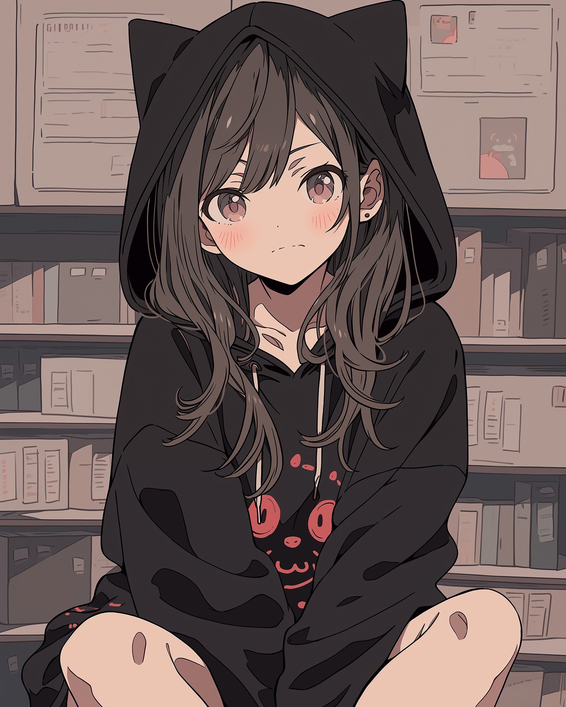 検索タグ:イラスト、ファッション、キャラクター、女性、女、女の子、女子、女の人、アニメ、漫画、マンガ、美人、美女、若い、かわいい、可愛い、カワイイ、人物、顔、美しい、綺麗、きれい、キレイ、アート、お洒落、挿絵、インスタ、Instagram、AI生成画像、fashion、コピースペース、おしゃれ、オシャレ、秋、秋服、待ち合わせ、秋冬ファッション、パーカー女子、猫耳、ダーク、黒、BLACK、ブラック、