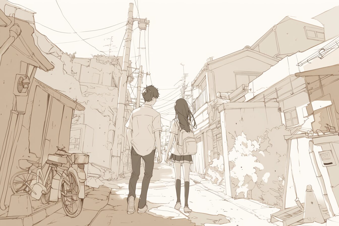 検索タグ:イラスト、キャラクター、女性、女、女の子、女子、女の人、アニメ、漫画、マンガ、美人、美女、若い、かわいい、可愛い、カワイイ、人物、顔、美しい、綺麗、きれい、キレイ、アート、お洒落、挿絵、インスタ、Instagram、AI生成画像、コピースペース、カップル、幸せ、恋愛、デート、恋、片思い、両思い、エモい、仲良し、友達、思い出、想い出、懐かしい、昔、過去、後ろ姿、学生、高校生、中学生