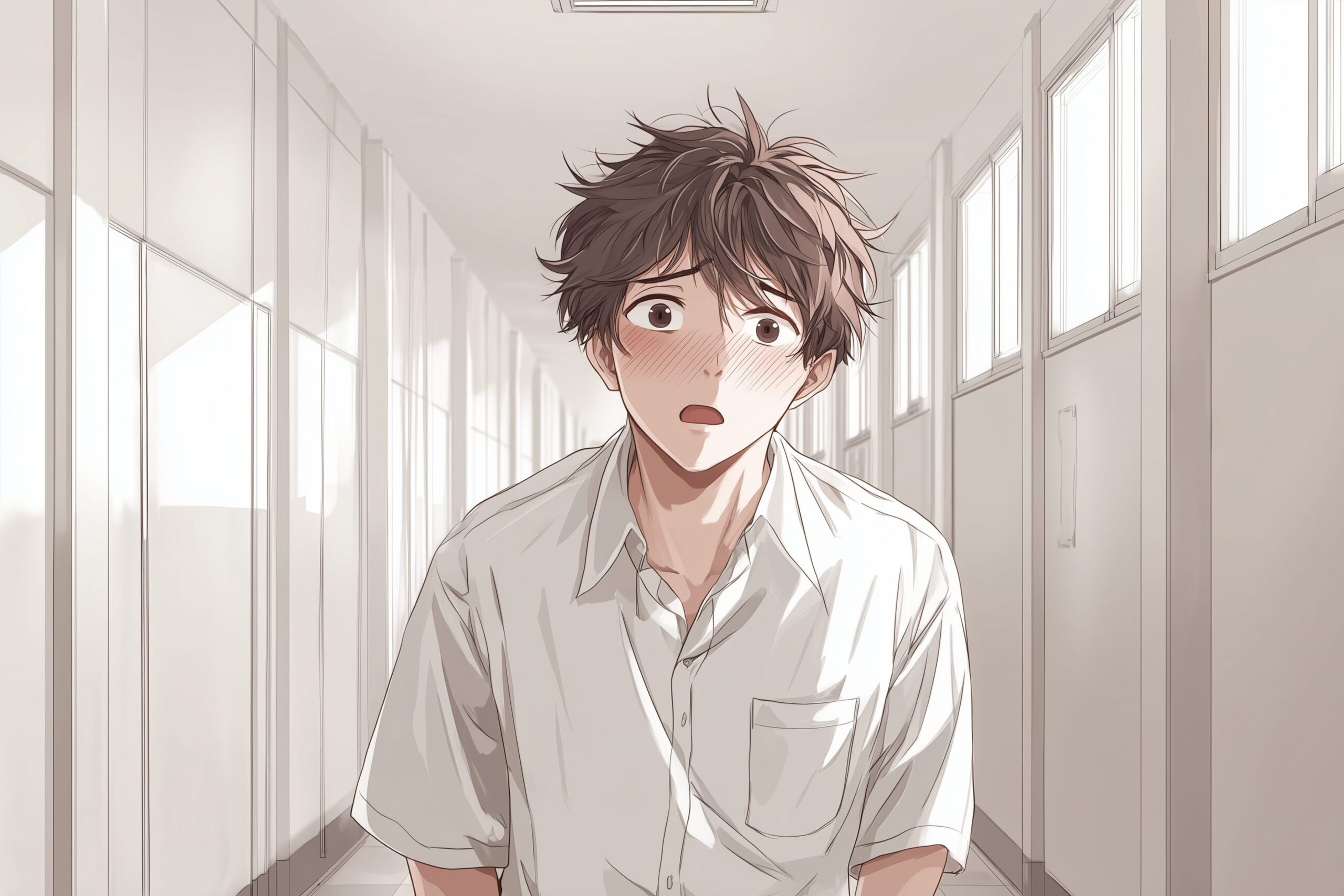 検索タグ:イラスト、ファッション、キャラクター、男性、男、男子、男の子、男の人、アニメ、漫画、マンガ、若い、人物、顔、アート、挿絵、インスタ、Instagram、AI生成画像、fashion、コピースペース、学生、高校生、茶髪、悲しい、驚き、驚く