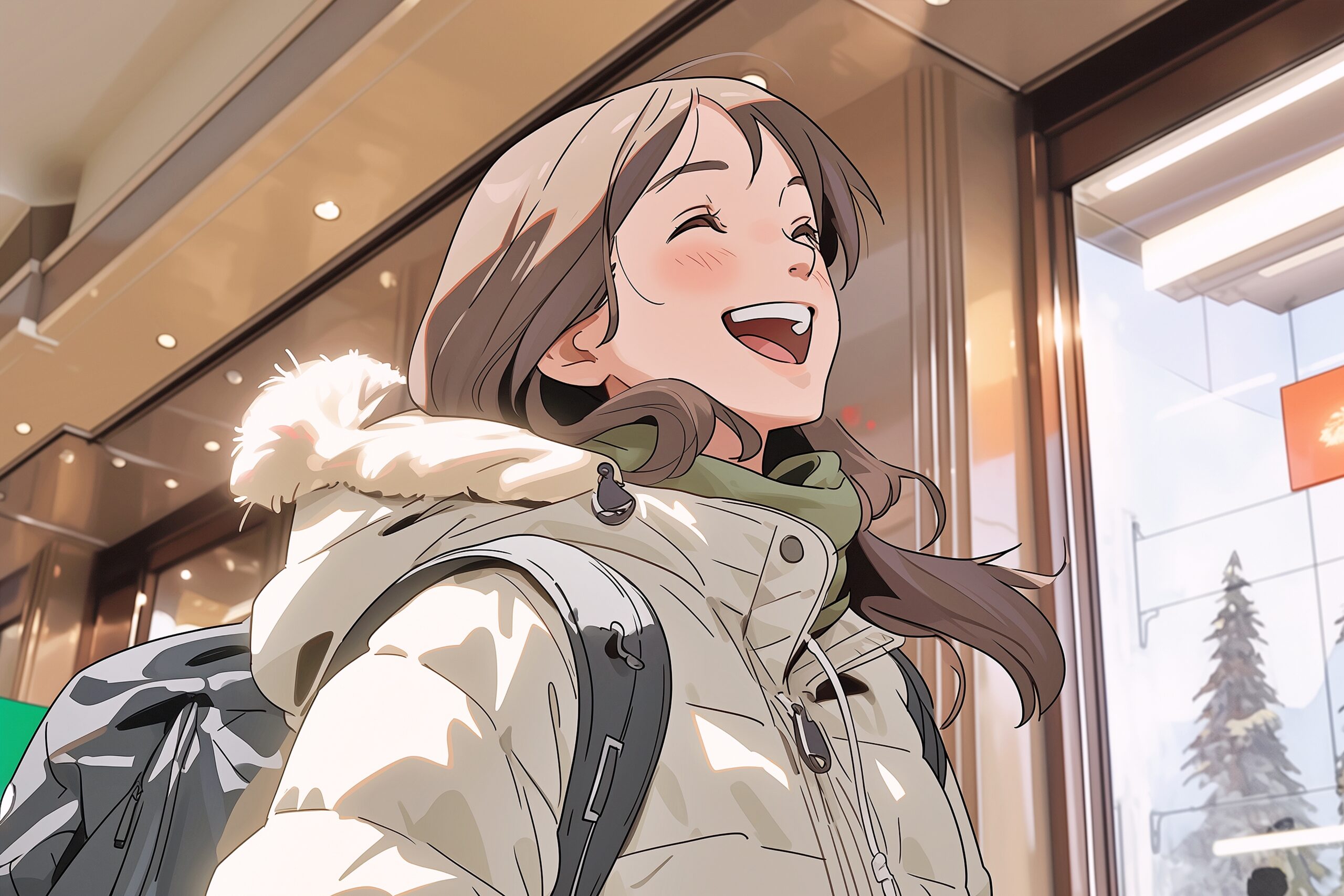 検索タグ:イラスト、ファッション、キャラクター、女性、女、女の子、女子、女の人、アニメ、漫画、マンガ、美人、美女、若い、かわいい、可愛い、カワイイ、萌え、萌え系、萌えキャラ、人物、顔、美しい、綺麗、きれい、キレイ、芸術、アート、顔、コート、冬服、冬、洋服、お洒落、おしゃれ、オシャレ、コーデ、コーディネート、ダウンジャケット、ダウン、白、ホワイト