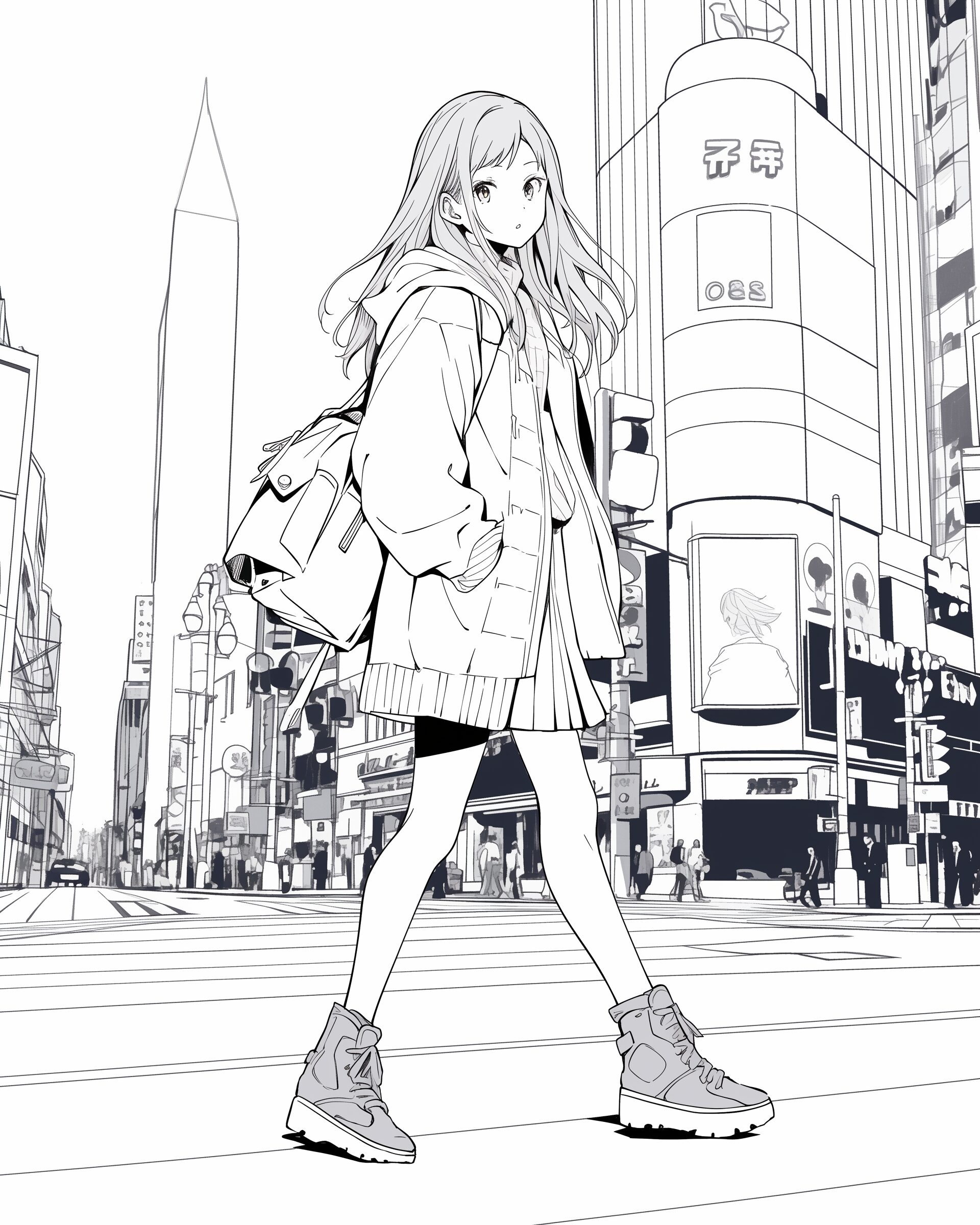 検索タグ:イラスト、ファッション、キャラクター、女性、女、女の子、女子、女の人、アニメ、漫画、マンガ、美人、美女、若い、かわいい、可愛い、カワイイ、人物、顔、美しい、綺麗、きれい、キレイ、アート、お洒落、女子高生、JK、挿絵、夏、春、パステルカラー、トップス、春服、インスタ、Instagram、歩く、徒歩、白黒、ファッション、モノクロ、