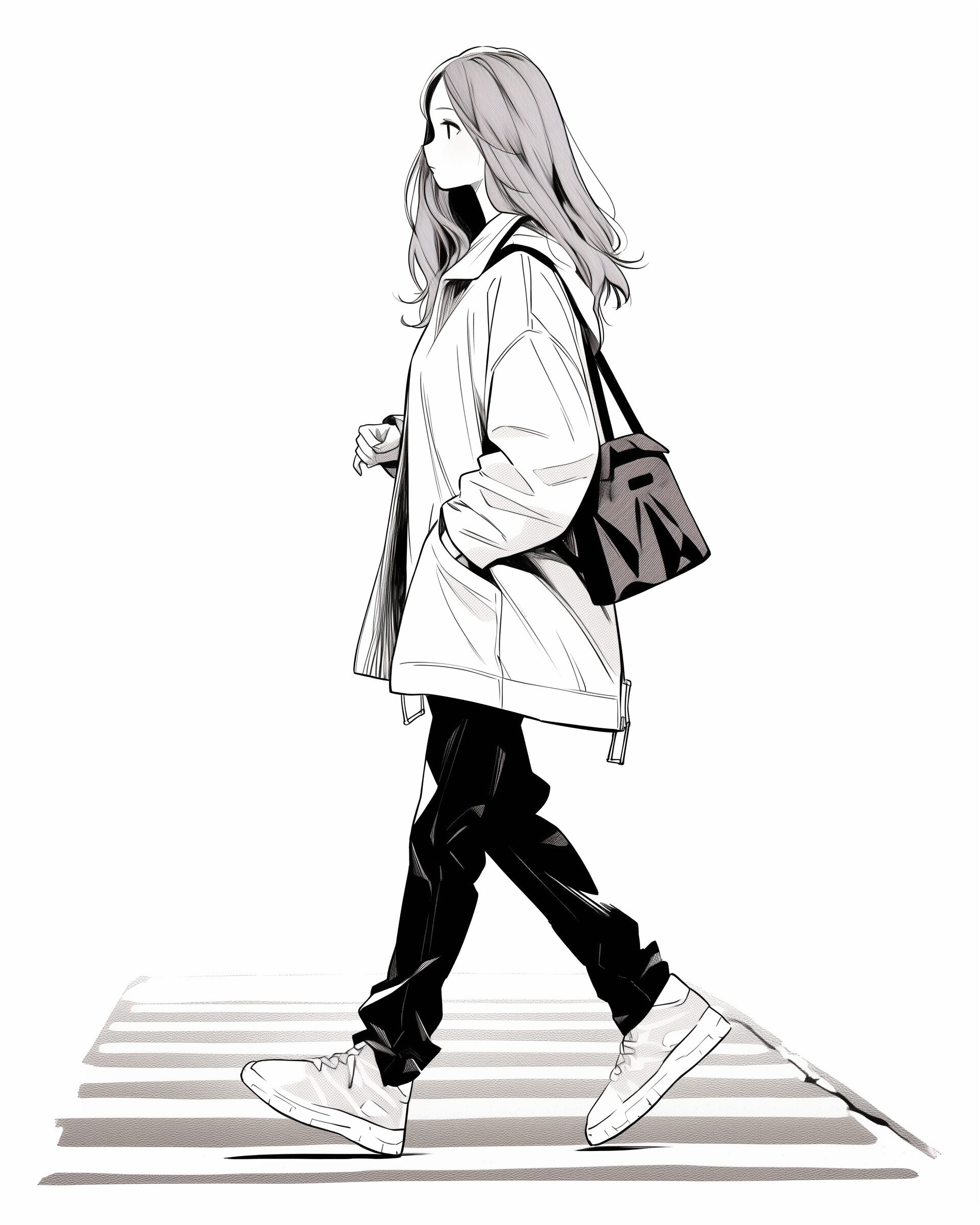 検索タグ:イラスト、ファッション、キャラクター、女性、女、女の子、女子、女の人、アニメ、漫画、マンガ、美人、美女、若い、かわいい、可愛い、カワイイ、人物、顔、美しい、綺麗、きれい、キレイ、アート、お洒落、女子高生、JK、挿絵、夏、春、パステルカラー、トップス、春服、インスタ、Instagram、歩く、徒歩、白黒、ファッション、モノクロ、