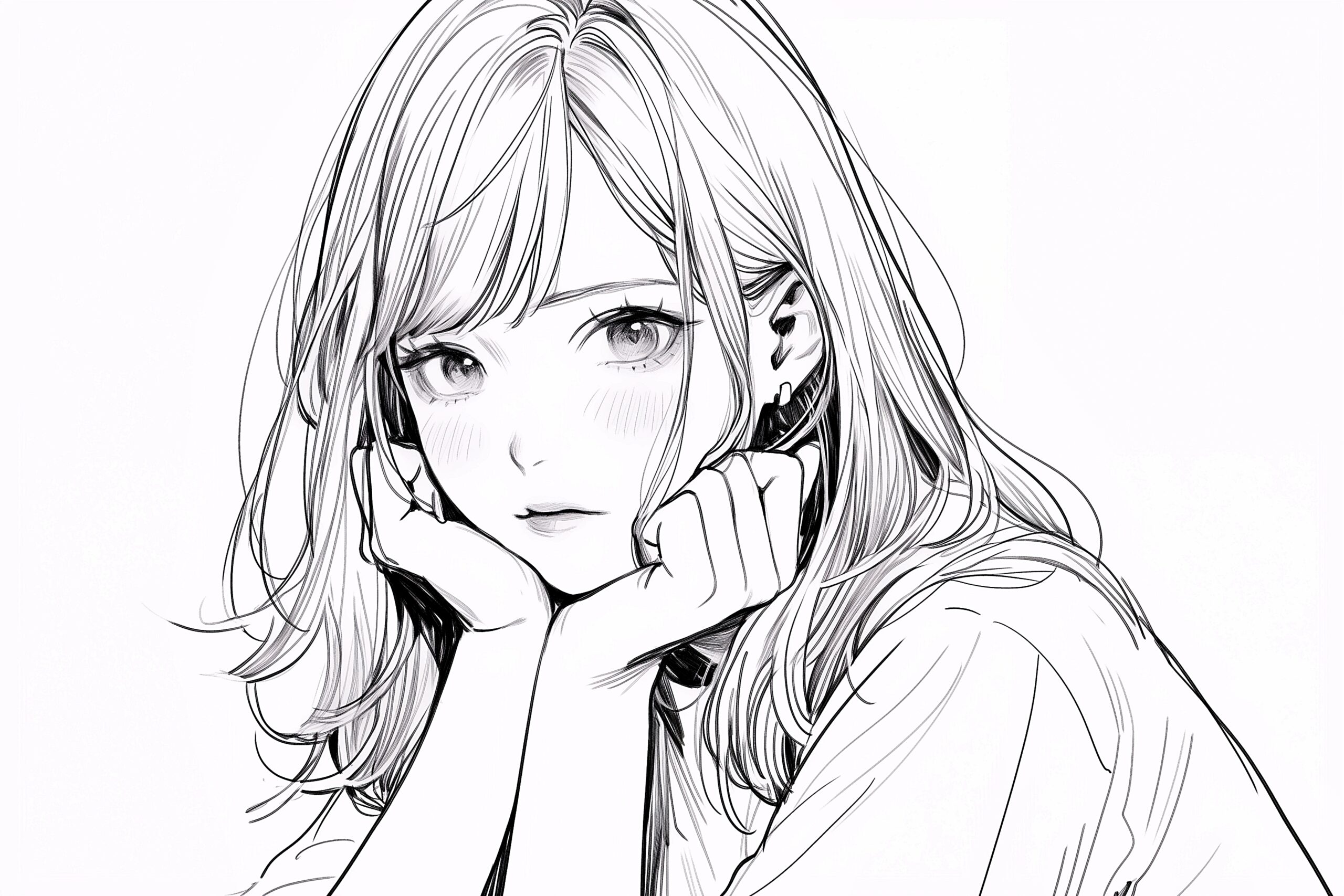 頬に手を当てるクールな白黒女性イラスト01