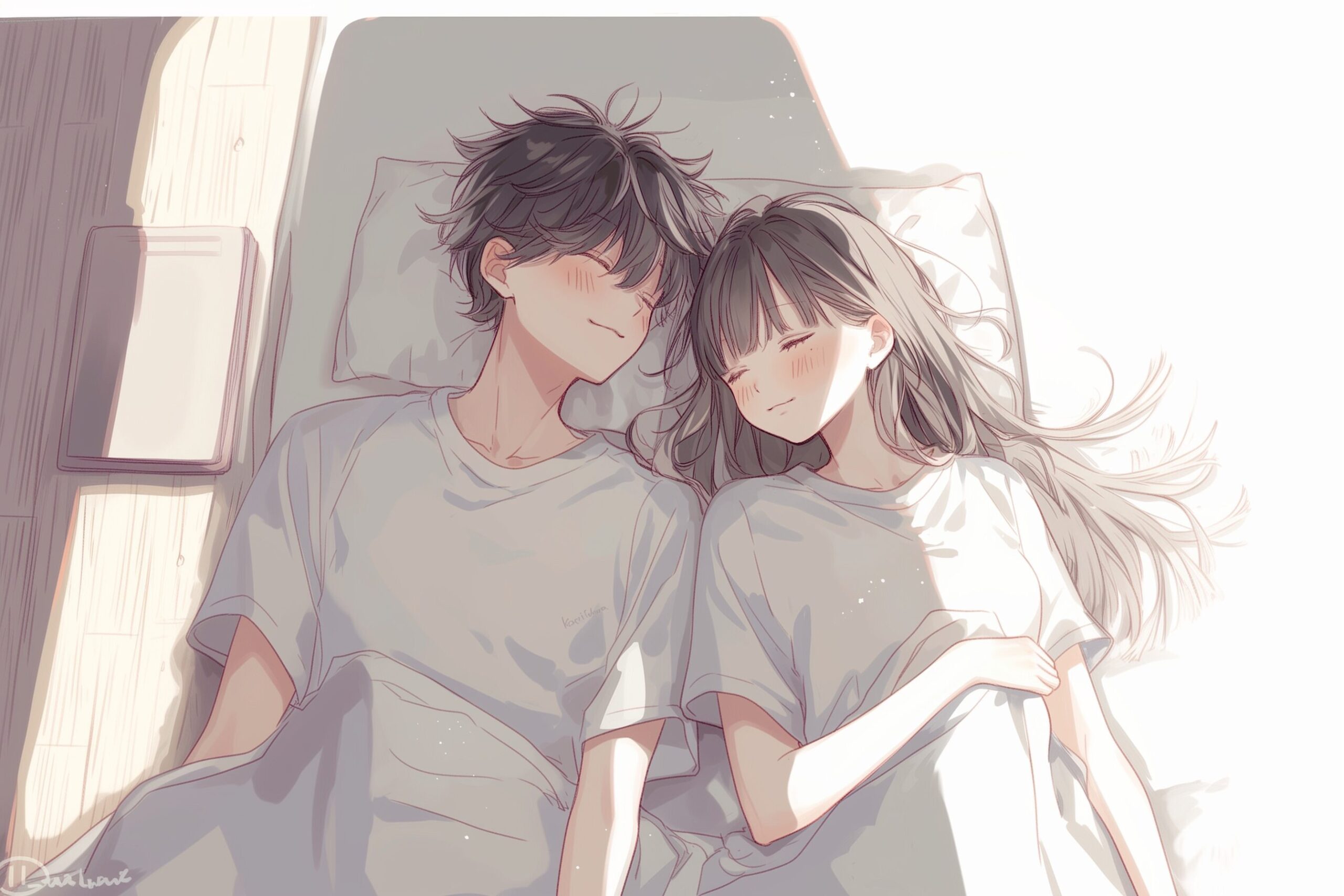 検索タグ:イラスト、ファッション、キャラクター、女性、女、女の子、女子、女の人、アニメ、漫画、マンガ、美人、美女、若い、かわいい、可愛い、カワイイ、人物、顔、美しい、綺麗、きれい、キレイ、アート、お洒落、挿絵、インスタ、Instagram、AI生成画像、コピースペース、カップル、恋人、愛、恋、恋愛、黒髪、笑顔、仲良し、男、男性、夫婦、寄り添う、眠る、睡眠、寝る、寝室、ベッドルーム、おやすみ、おやすみなさい