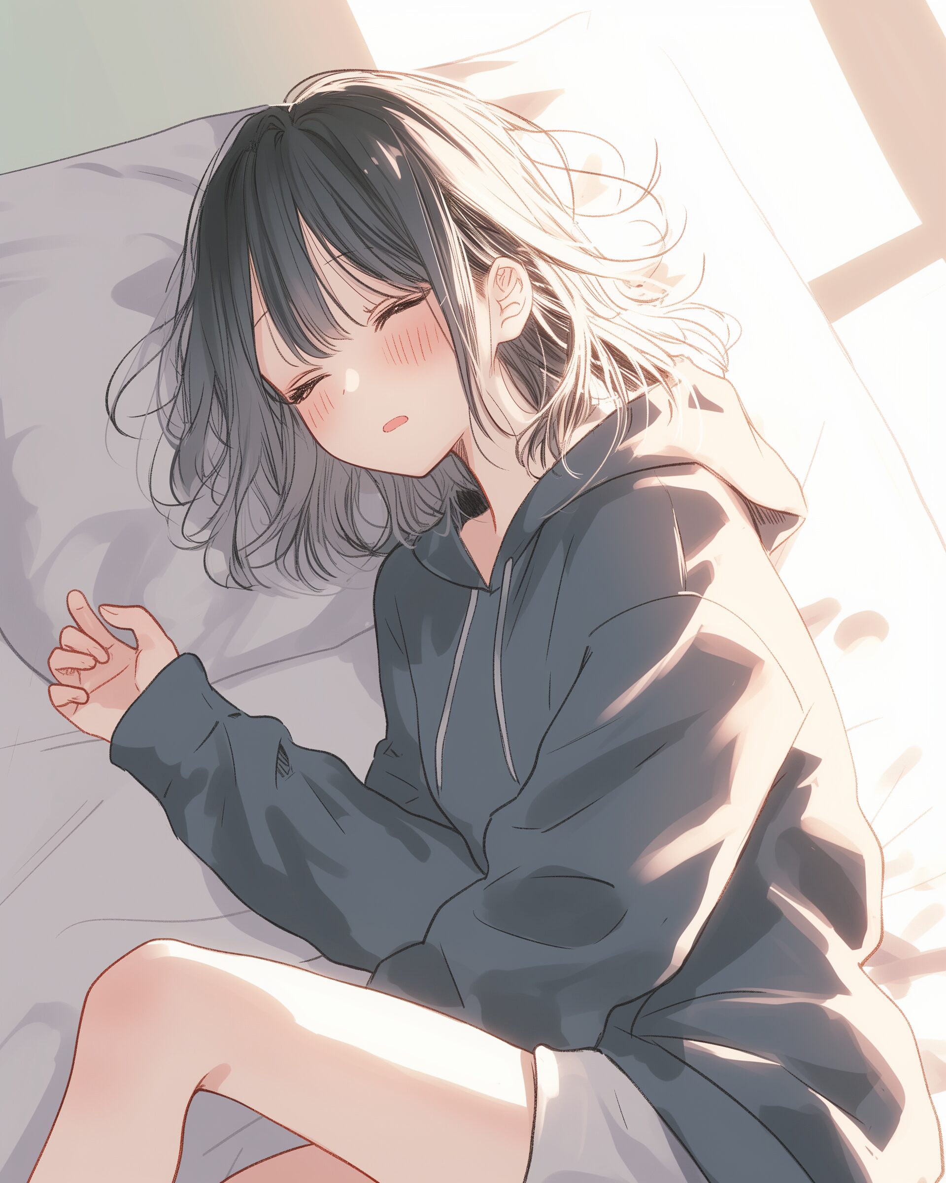検索タグ:イラスト、ファッション、キャラクター、女性、女、女の子、女子、女の人、アニメ、漫画、マンガ、美人、美女、若い、かわいい、可愛い、カワイイ、人物、顔、美しい、綺麗、きれい、キレイ、アート、お洒落、挿絵、インスタ、Instagram、AI生成画像、fashion、コピースペース、ソファ、お昼寝、寝る、眠る、睡眠、ぐっすり、黒髪、パーカー女子