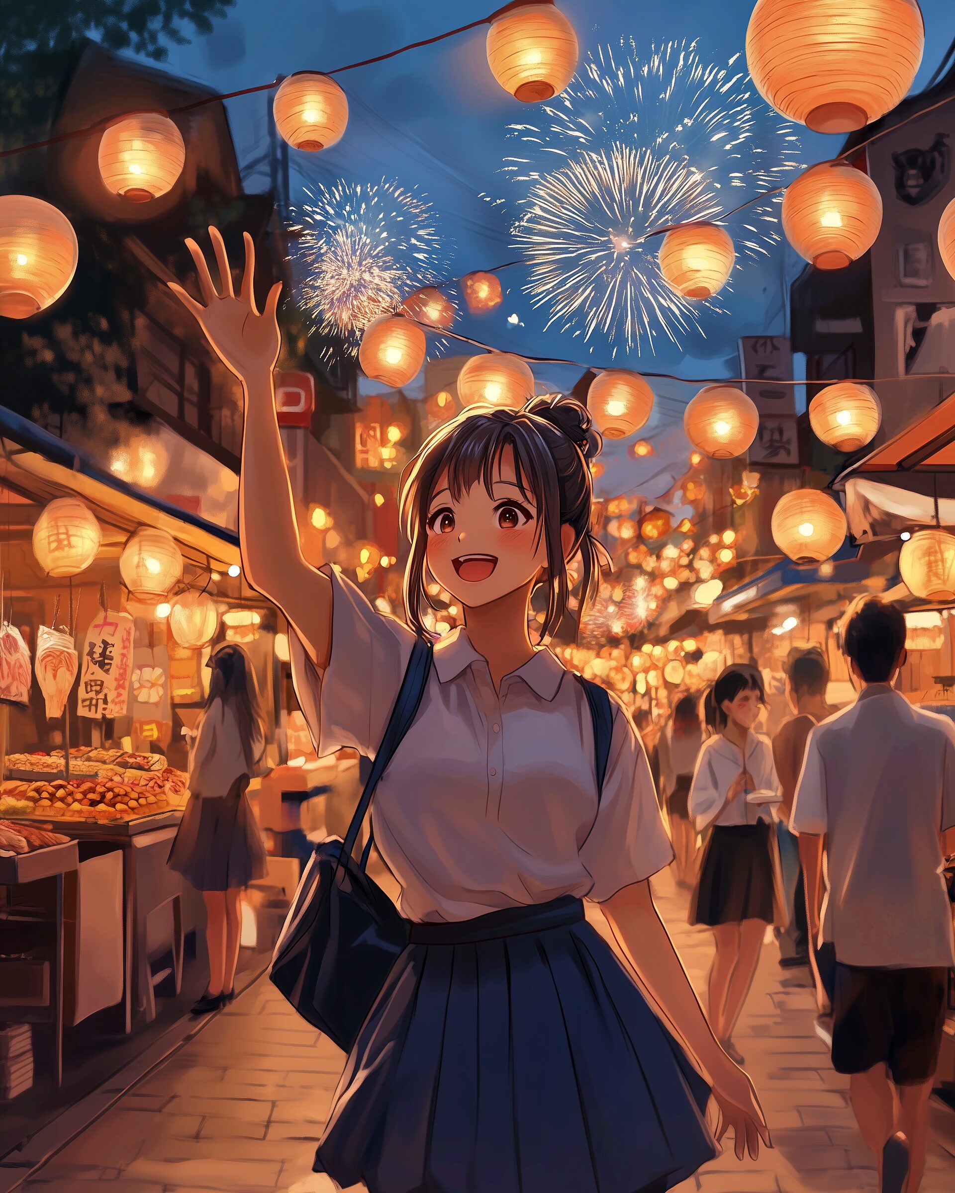 検索タグ:イラスト、ファッション、キャラクター、女性、女、女の子、女子、女の人、アニメ、漫画、マンガ、美人、美女、若い、かわいい、可愛い、カワイイ、人物、顔、美しい、綺麗、きれい、キレイ、アート、お洒落、女子高生、JK、挿絵、夏、春、パステルカラー、春服、インスタ、Instagram、夏、夏服、summer、fashion、サムネイル、アイキャッチ、コピースペース、お祭り、夏祭り、提灯、ちょうちん、屋台、花火大会、縁日、夏休み